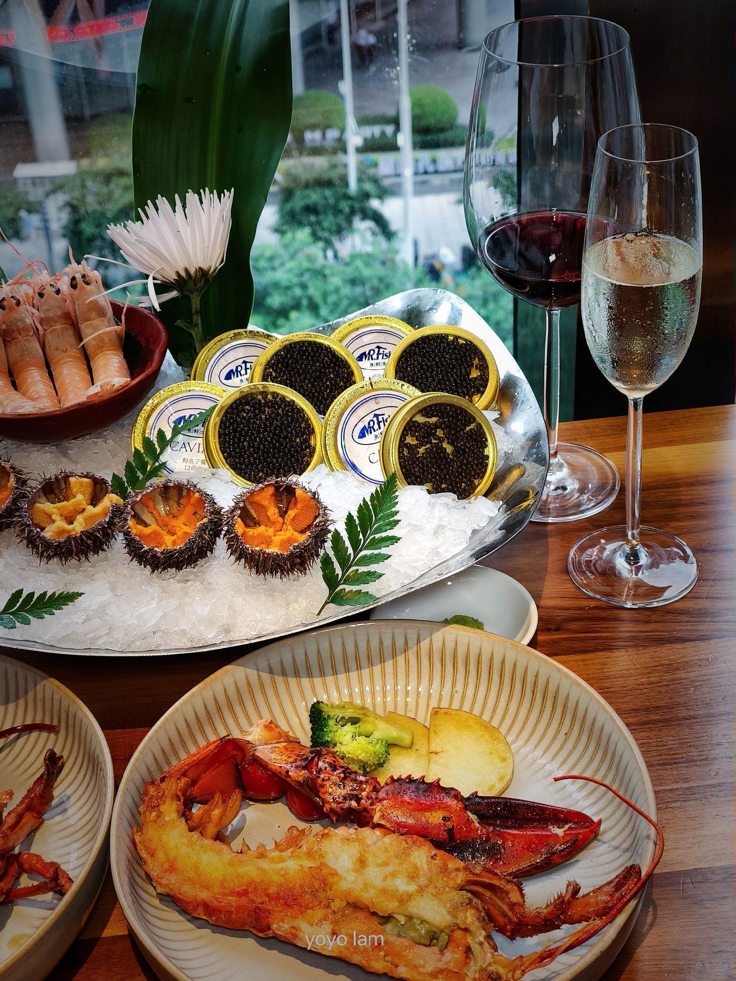在广州CBD实现刺身酒水自由,是什么感受。广州这段时间边出太阳🌞边下雨🌧️,不找个CBD高空窗边位边欣赏变幻莫测的天气边吃大餐,真的对不起广州这离谱的天气😂 实现刺身、海鲜、酒水自由,真的不要太爽了吧!有我大爱的原只海胆、波龙、鳌虾、鱼子酱……好东西多到数不完😜,四人同行还送一只巨型松叶蟹🦀,正到无朋友😍 还可以看到师傅在现场“起火”,哈哈,是烤牛排🥩火焰秀,视觉+味觉的享受🥰