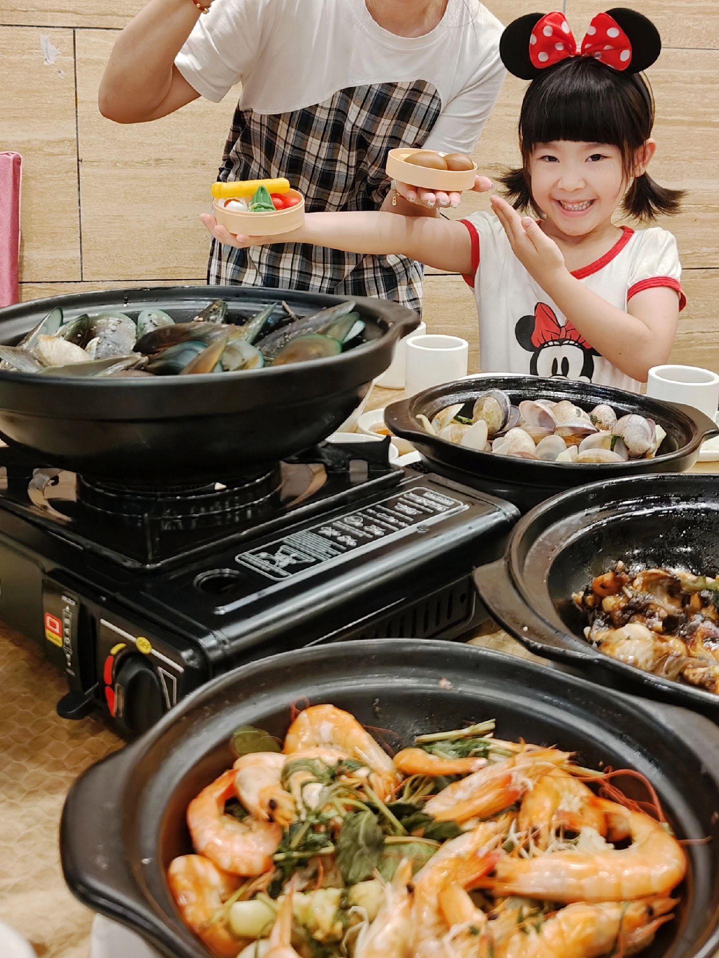 老广N刷的粤菜酒楼!这价位还做什么饭?街坊们都说:今晚别做饭了!去新东城啦! 因为这家陪伴了老广10年的街坊店,真的又便宜又好吃,老广口中的“抵食夹大件”😂 ⭕就在解放中,近北京路 ⭕十年品牌深受老广喜爱 ⭕拒绝预制菜,现煮现做 ⭕街坊价💰,max性价比 我们今天一次点了4个砂锅海鲜+招牌陈皮烧鹅,大满足✌️✌️ ✨自己动手丰衣足食!砂锅煲是自己动手煮的,味已经调好,盖上锅盖,填好⏰,到点开盖就行! 🍲金不换焗大虾≈6分钟 🍲迷铁香焗青口≈8分钟 🍲紫苏焗老虎钳≈8分钟 🍲罗勒焗彩虹贝≈