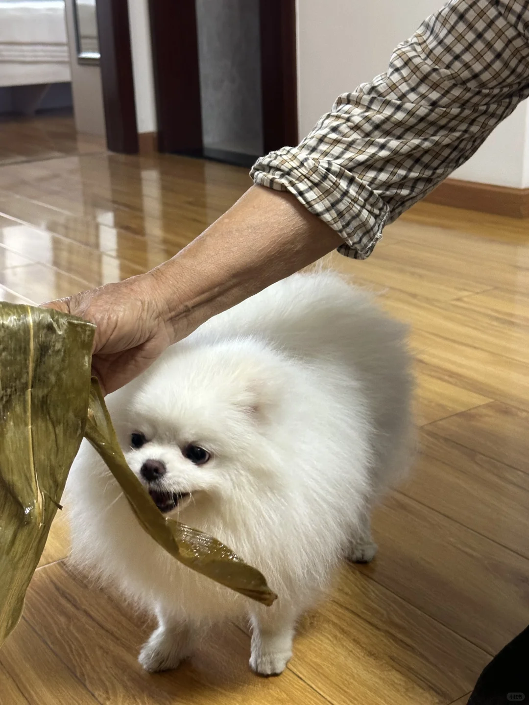 馋狗过端午 端午节 是宠物更是家人 我的萌宠 博美 小白 粽子 小狗日记 狗子也过节