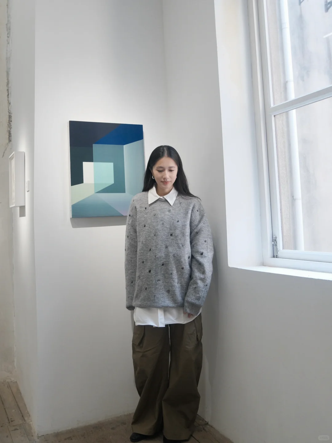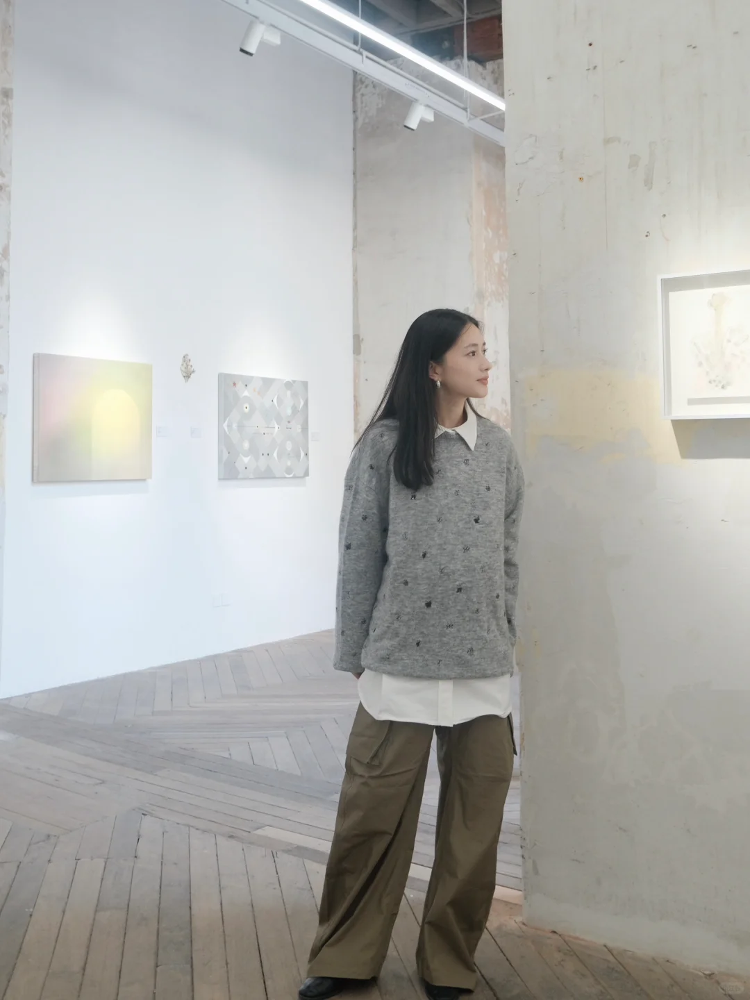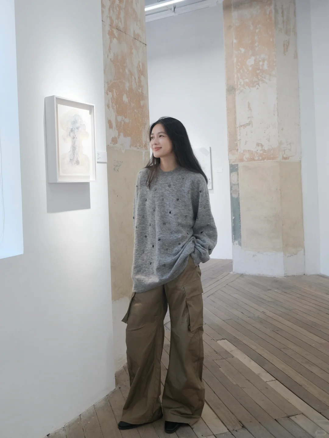 看展就要穿出态度, JNBY秋装的质感法则 让人轻松拿捏艺术与时尚的双重魅力。 轻盈与质感,柔软与挺括, 都是精心搭配的原材料。 白色衬衫百搭好穿,下摆是可以扭来扭去的巧妙设计, 灰色毛衣宽松软和,点缀了蝴蝶元素的珠片绣, 很适合入秋后和衬衫的叠搭,灰色毛衣无论搭配哪个色系的衬衫都不会出错, 这件大概率会成为我今年秋天高频上身的单品, 下半身的工装风阔腿裤带出了个性,让整体搭配更加利落, 看似不同风格的单品搭在一起,碰撞出了不一样的感觉。 好的设计该是如此,让穿搭也能成为艺术的一部分。