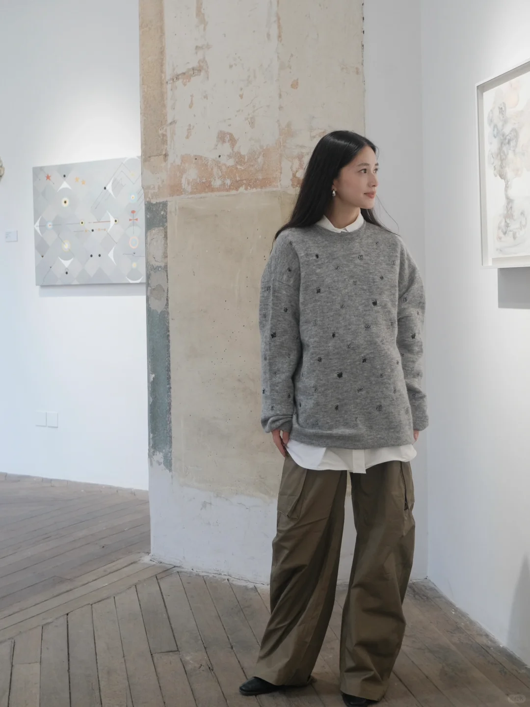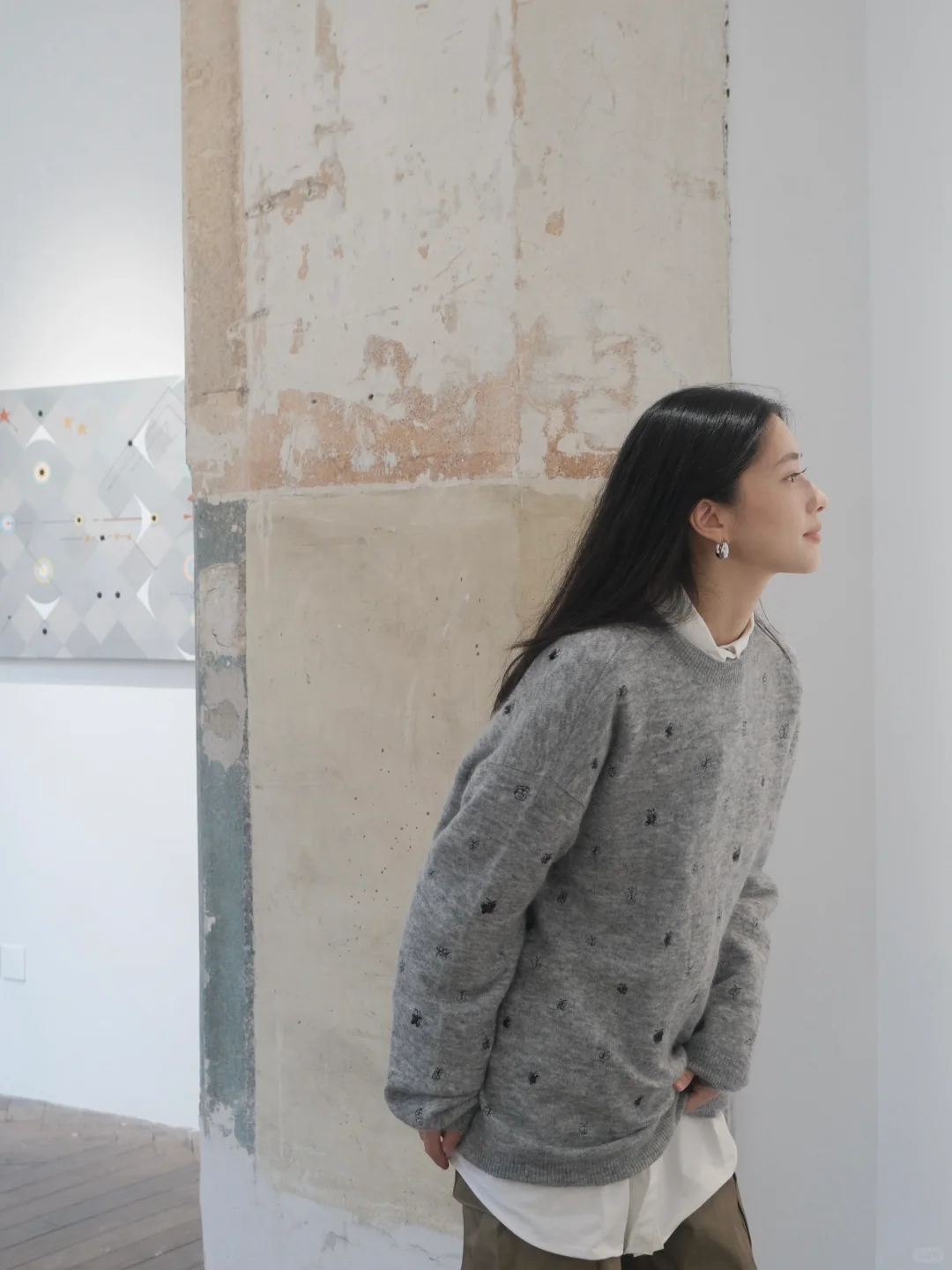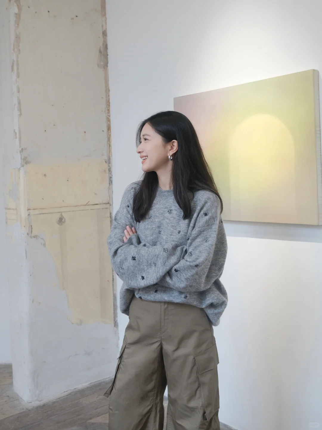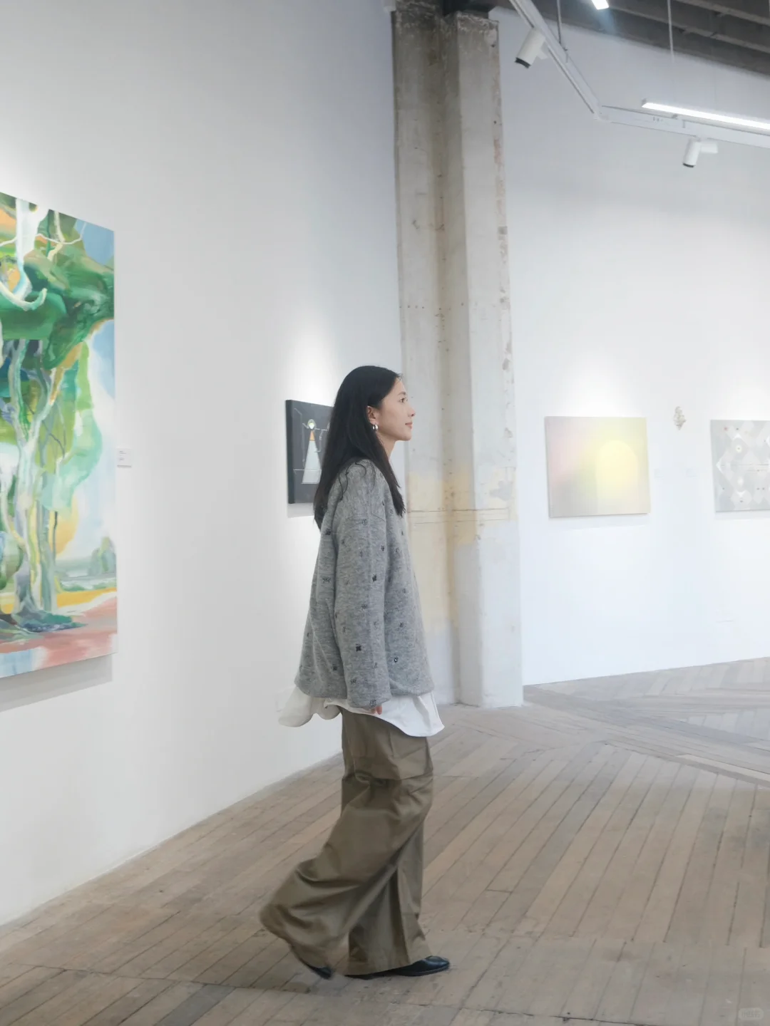 看展就要穿出态度, JNBY秋装的质感法则 让人轻松拿捏艺术与时尚的双重魅力。 轻盈与质感,柔软与挺括, 都是精心搭配的原材料。 白色衬衫百搭好穿,下摆是可以扭来扭去的巧妙设计, 灰色毛衣宽松软和,点缀了蝴蝶元素的珠片绣, 很适合入秋后和衬衫的叠搭,灰色毛衣无论搭配哪个色系的衬衫都不会出错, 这件大概率会成为我今年秋天高频上身的单品, 下半身的工装风阔腿裤带出了个性,让整体搭配更加利落, 看似不同风格的单品搭在一起,碰撞出了不一样的感觉。 好的设计该是如此,让穿搭也能成为艺术的一部分。
