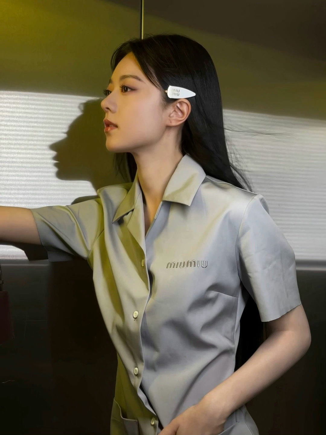#赵今麦上海活动#赵今麦上海活动出图,黑长直搭配灰色衬衫裙尽显A感!美美哒很安心