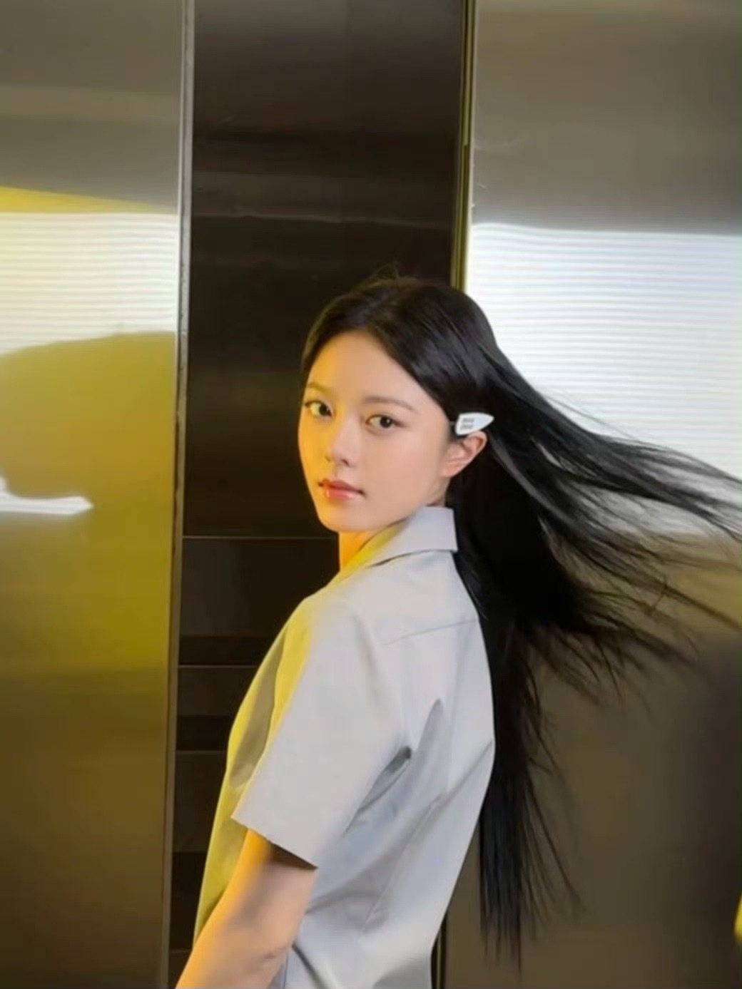 #赵今麦上海活动#赵今麦上海活动出图,黑长直搭配灰色衬衫裙尽显A感!美美哒很安心[awsl]