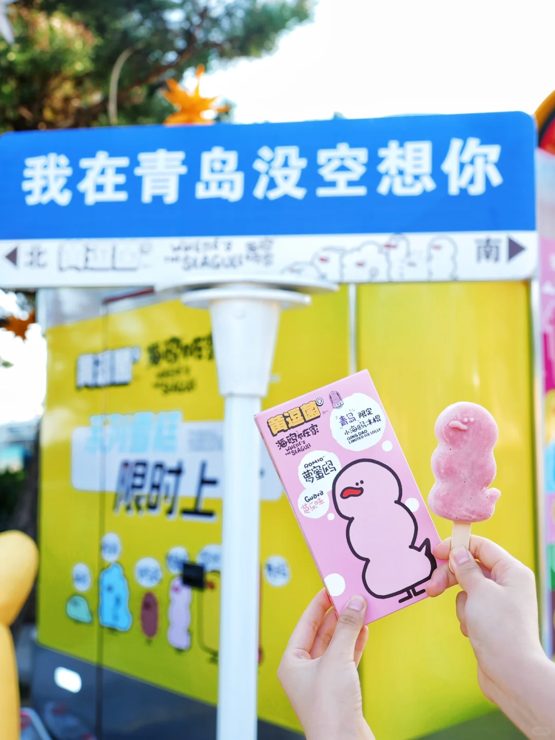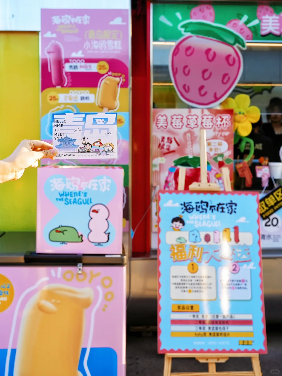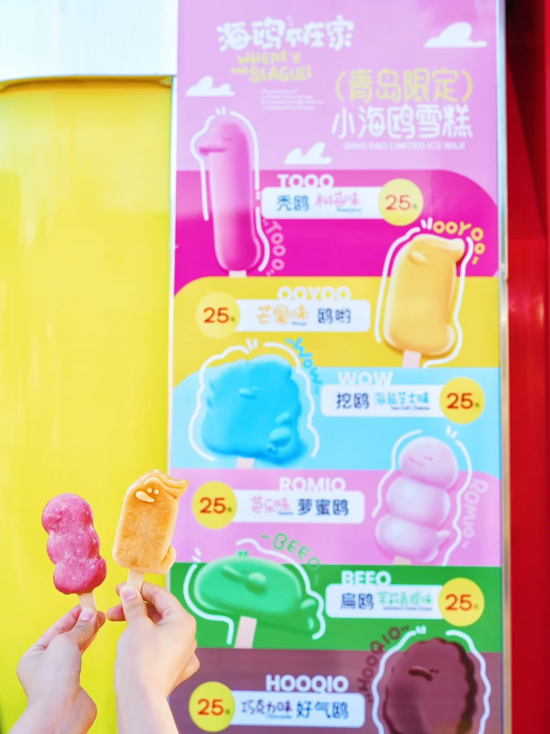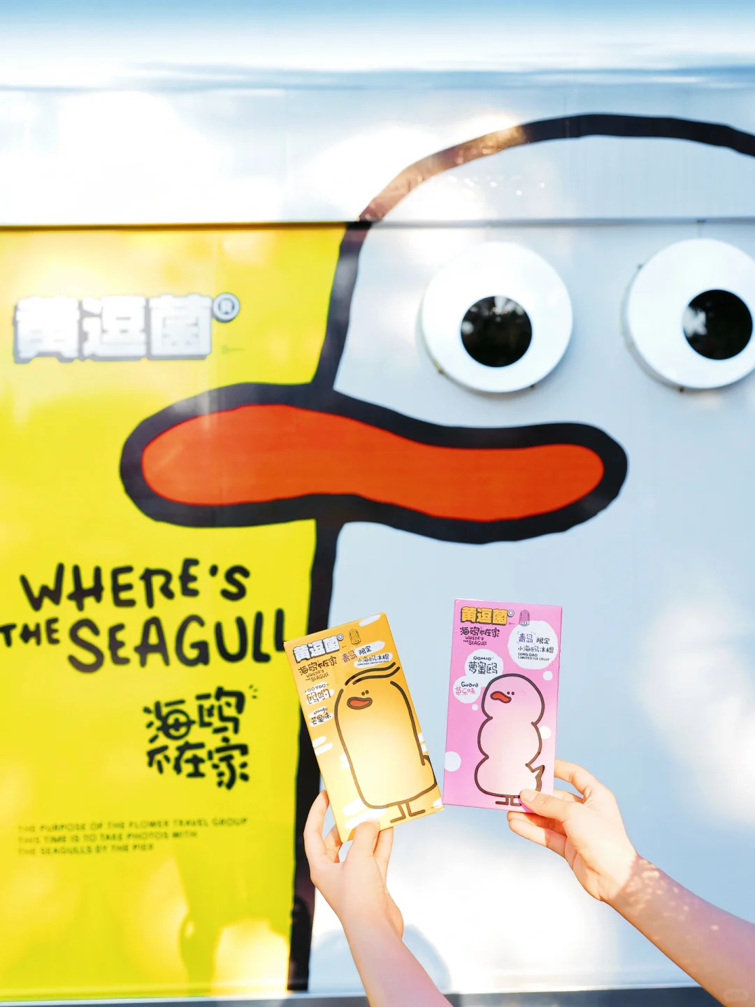 打卡栈桥一定不能错过的青岛周边! 尊嘟太太太可爱了! · 在面对栈桥的右手边🫱 有一辆黄色的黄逗菌餐车!! 不仅可以吃到“海鸥不在家”文创雪糕🍦 还有超级萌的饮品~拎在路上好多人来问! 餐车也有很多可可爱爱的打卡机位📷 现在还有扇子和包包挂件周边✅ ·