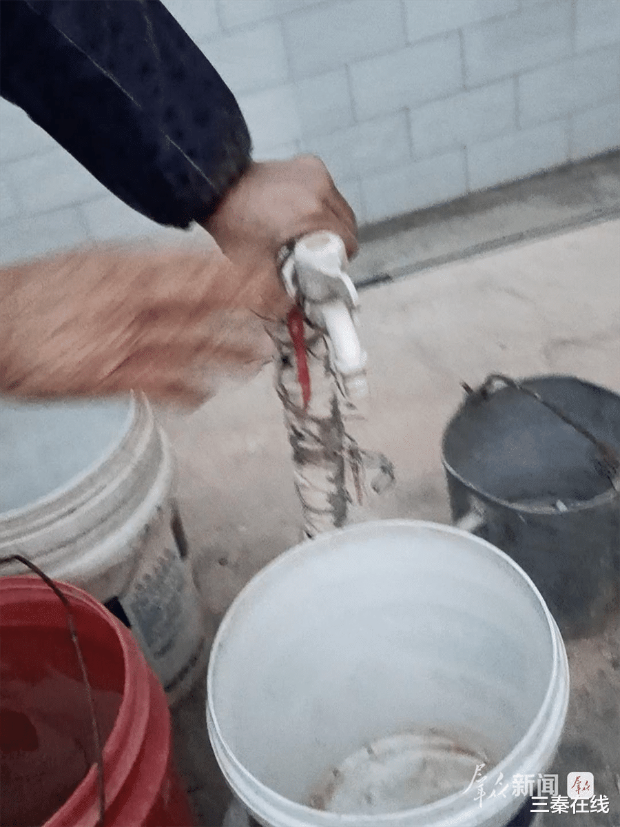 相似的困境在武功县游凤镇新村上组更为严峻。当日下午,在村民家中,记者看到两个水瓮和三个水桶格外醒目。“三天供一次水,每天就盼着供自来水,错过了就得去村里的水塔拉水。”她的语气里满是无助。记者凑近水桶,底部的泥沙清晰可见。“这水静置半天才能用。长期喝这样的水,心里总不踏实。”不远处的村民说。