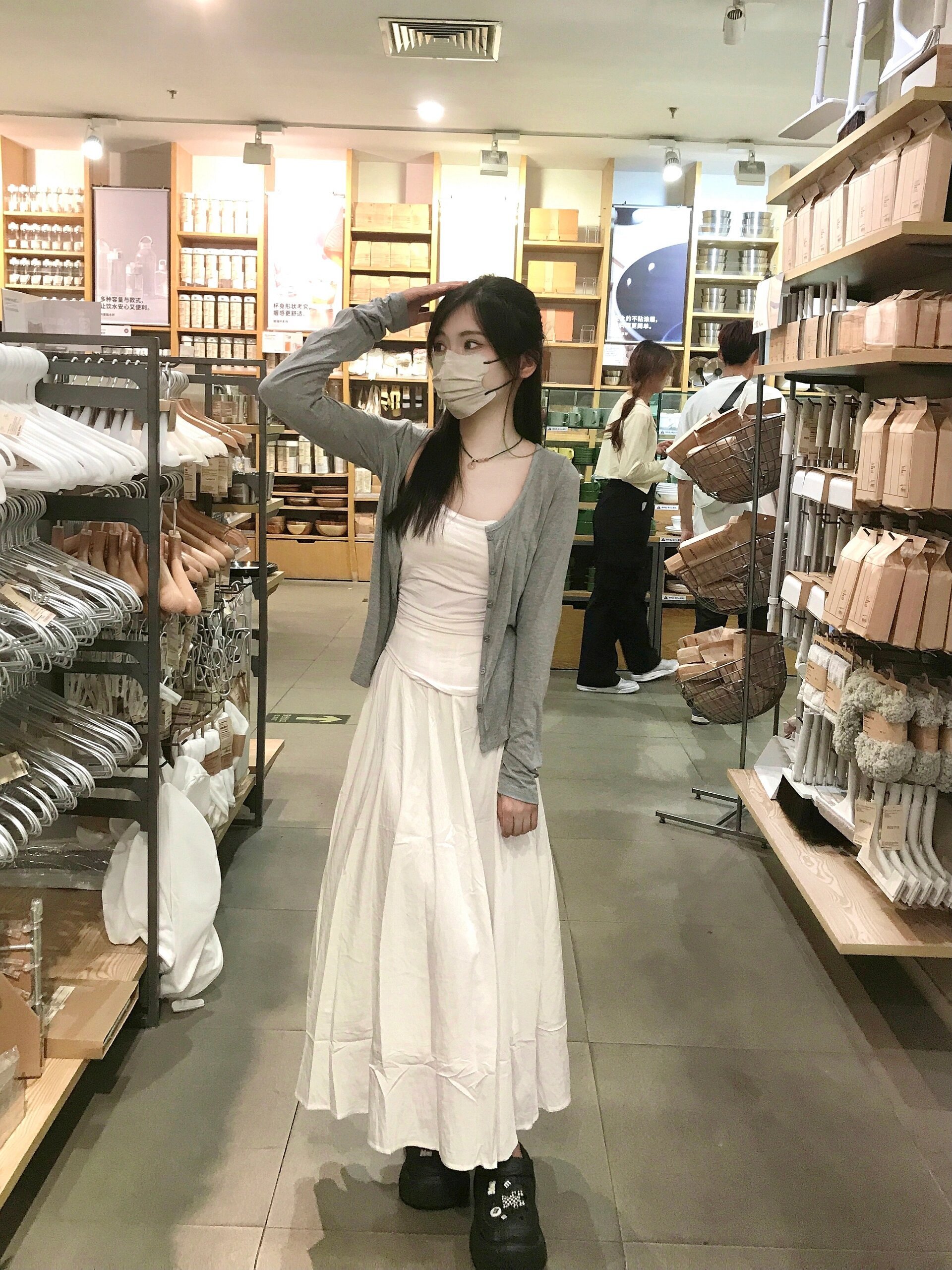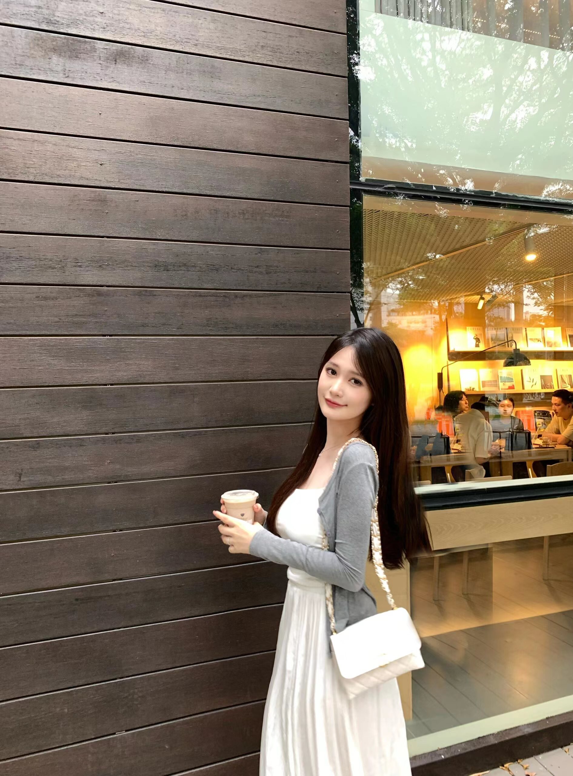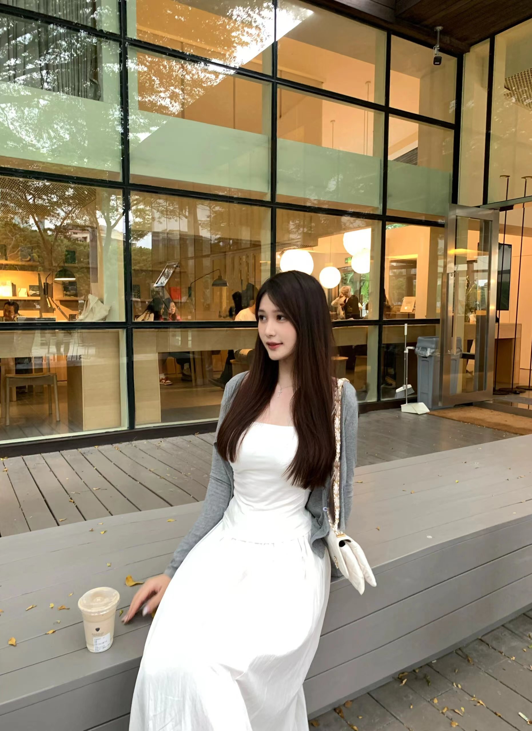 早初秋韩系穿搭一整套法式白色吊带连衣裙