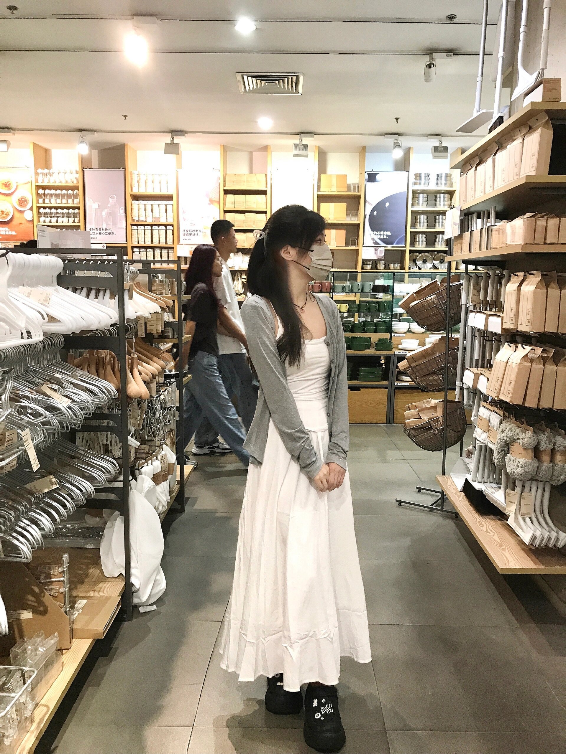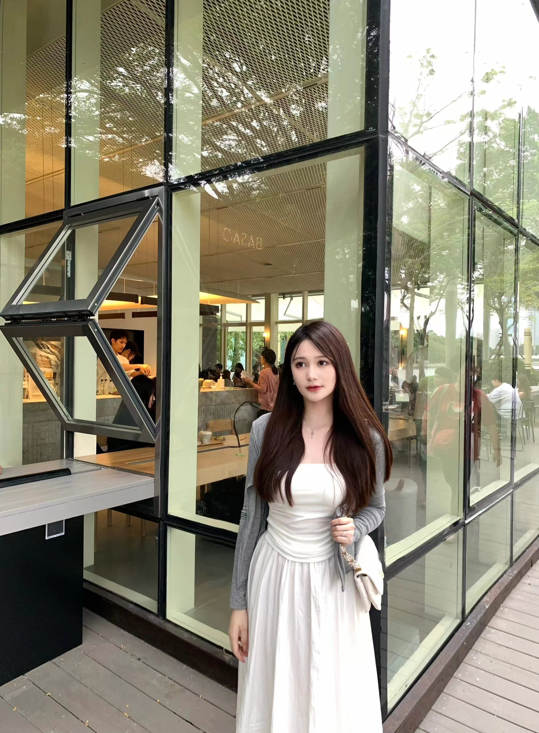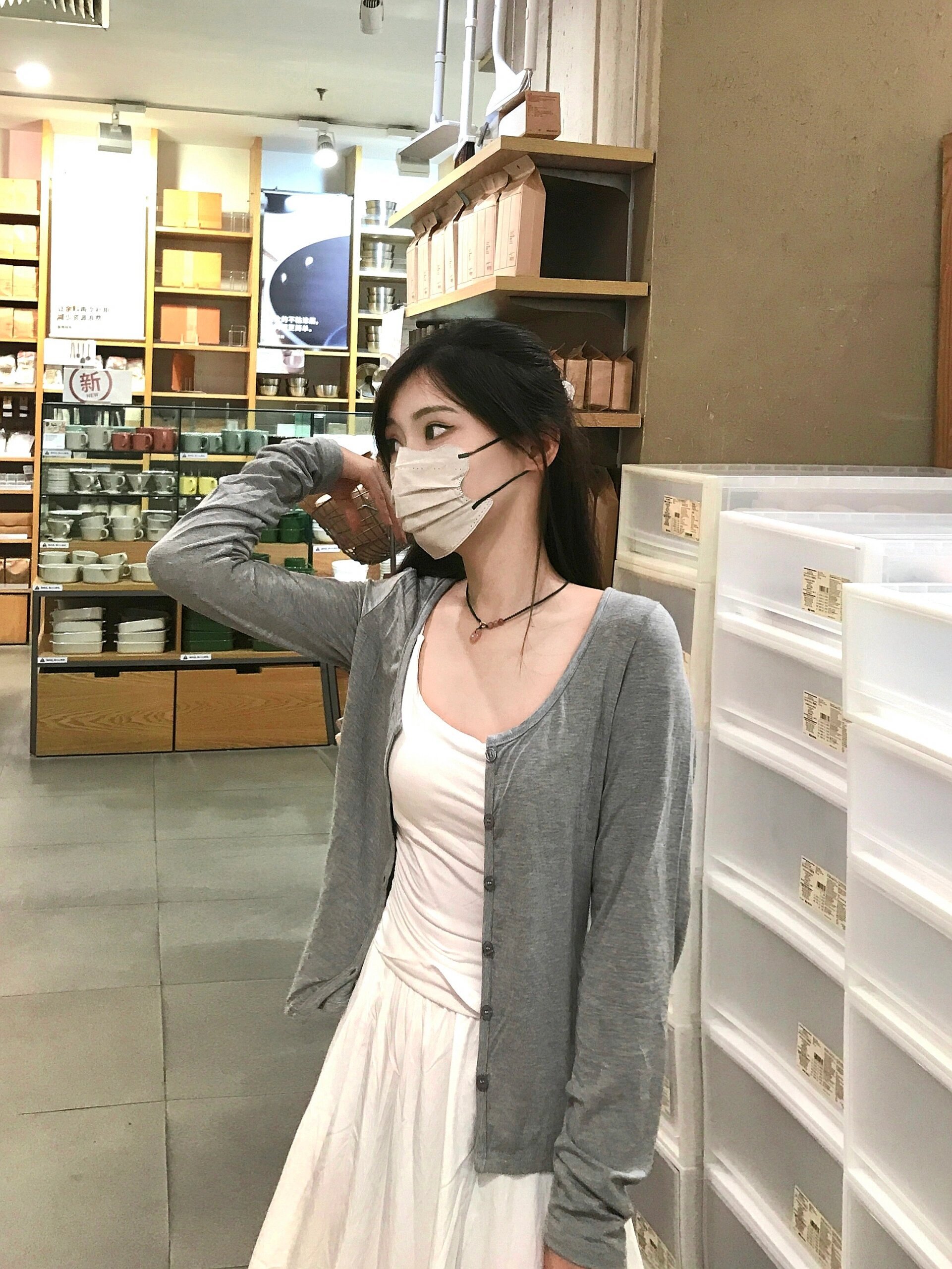 早初秋韩系穿搭一整套法式白色吊带连衣裙