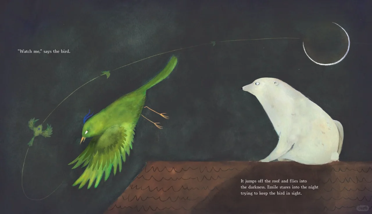 一只绿鸟教会了他"有来有往、循环往复"的道理,埃米尔学会了平静面对分离,终于在一觉睡醒后又看到了天边的新月。