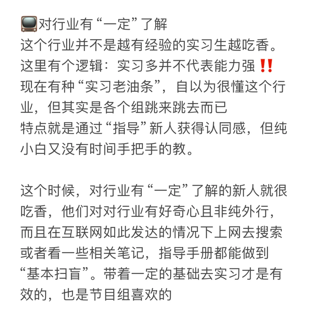 这个行业并不是越有经验的实习生越吃香。这里有个逻辑:实习多并不代表能力强‼️