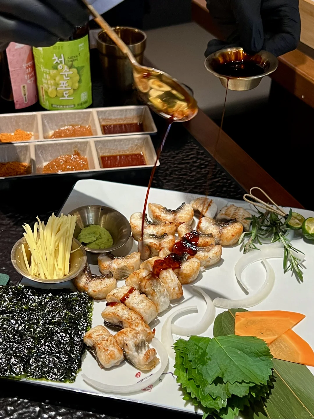 开福区我值得无限n刷的韩国烤肉店!!太太太宝藏了。。。。就在北辰地铁口100m 海鲜奶油芝士炒年糕 一整个被惊艳住了,烤肉品质嘎嘎好,蘸着韩国酱蟹和覆盆子红醋,好正宗的口感! 烤肉全程有店员帮忙烤,服务好,无论是小吃、炒饭还是烤肉,都没有踩雷诶!! 连南瓜羹和九宫格无限吃小菜...都好好吃啊啊啊啊...