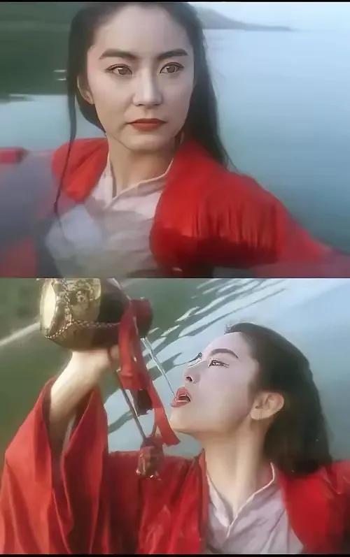 大红色长衫,仰天饮酒,眉眼间英气冲天,她诠释的东方不败至今是无法超越的经典。