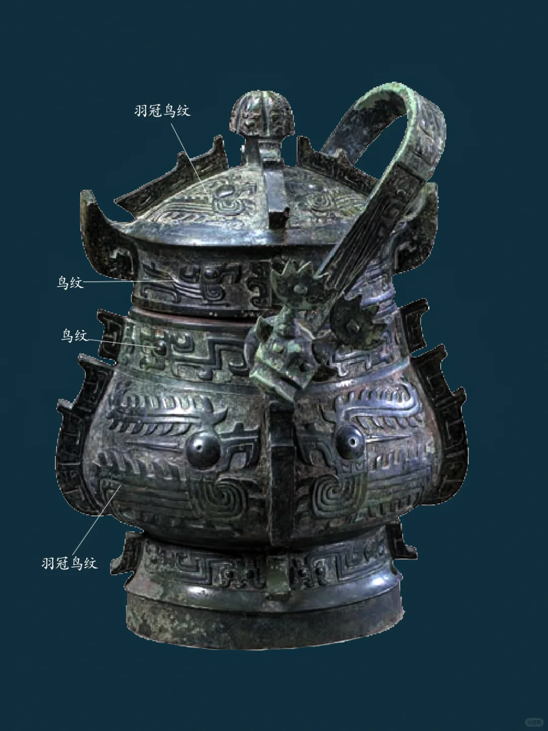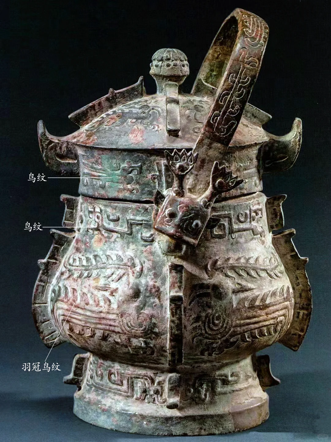 西周早期特有凤鸟纹饰:羽冠鸟纹。