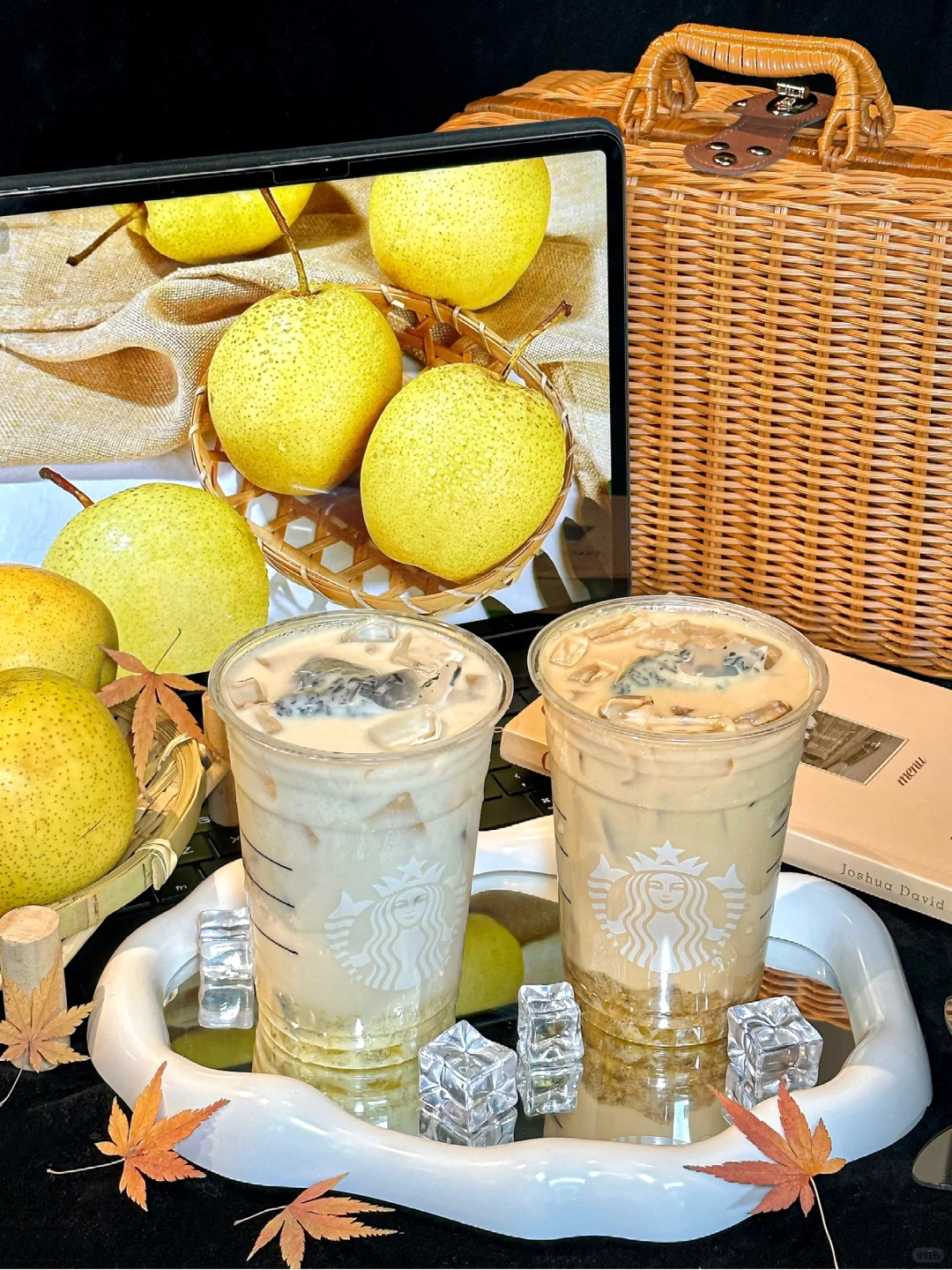 一口有种秋风拂面的感觉!!雪梨果肉的清甜在嘴里3D环绕!大红袍茶的浓香与咖啡浓郁交织,搭配特调厚醇乳,真的喝不腻!!!