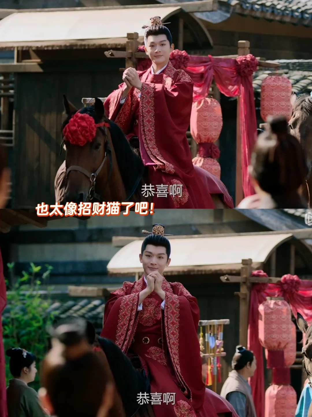 嘴角根本压制不住内心的喜悦,路人恭喜他回礼,活脱脱成了招财猫模样!