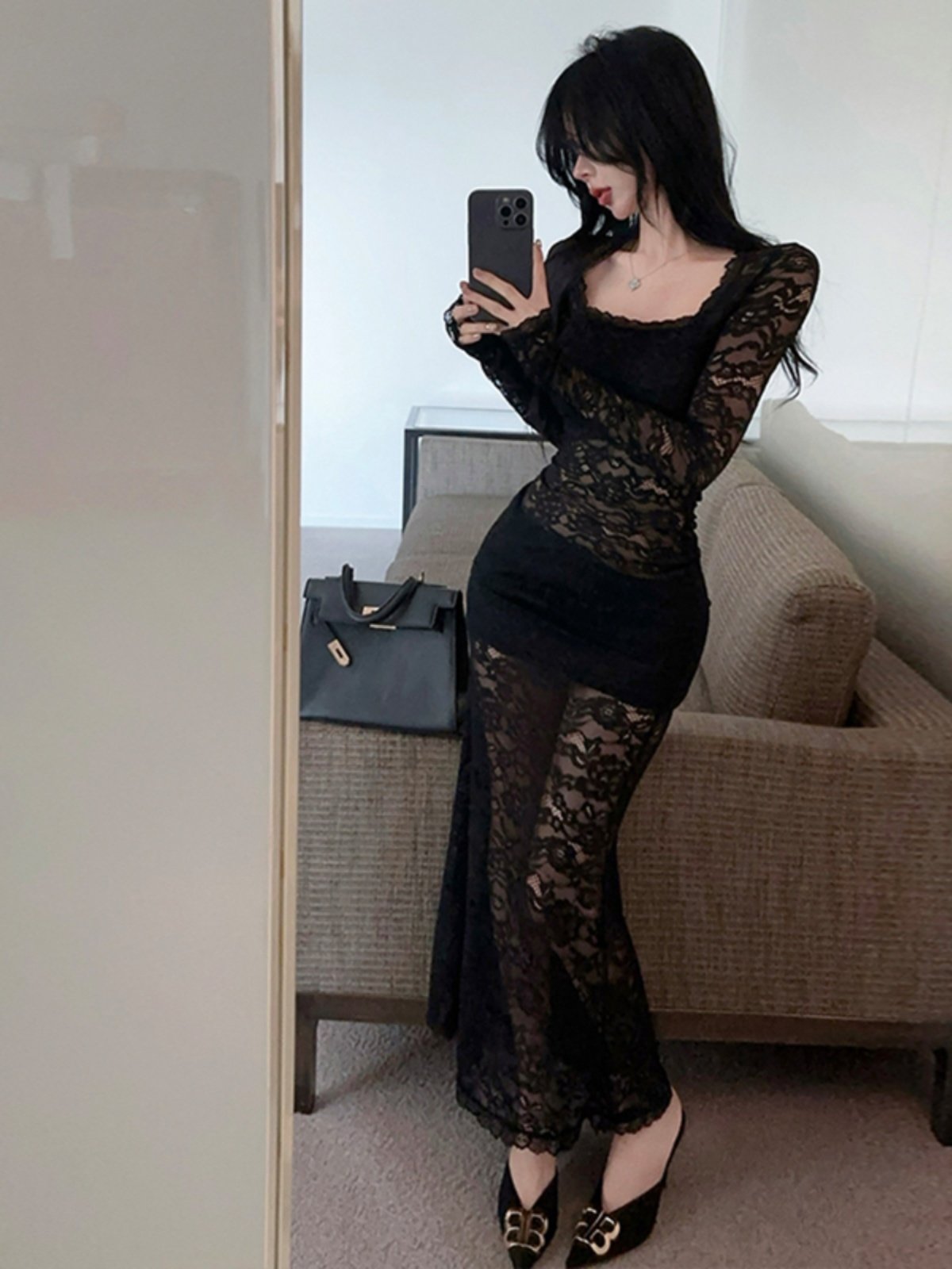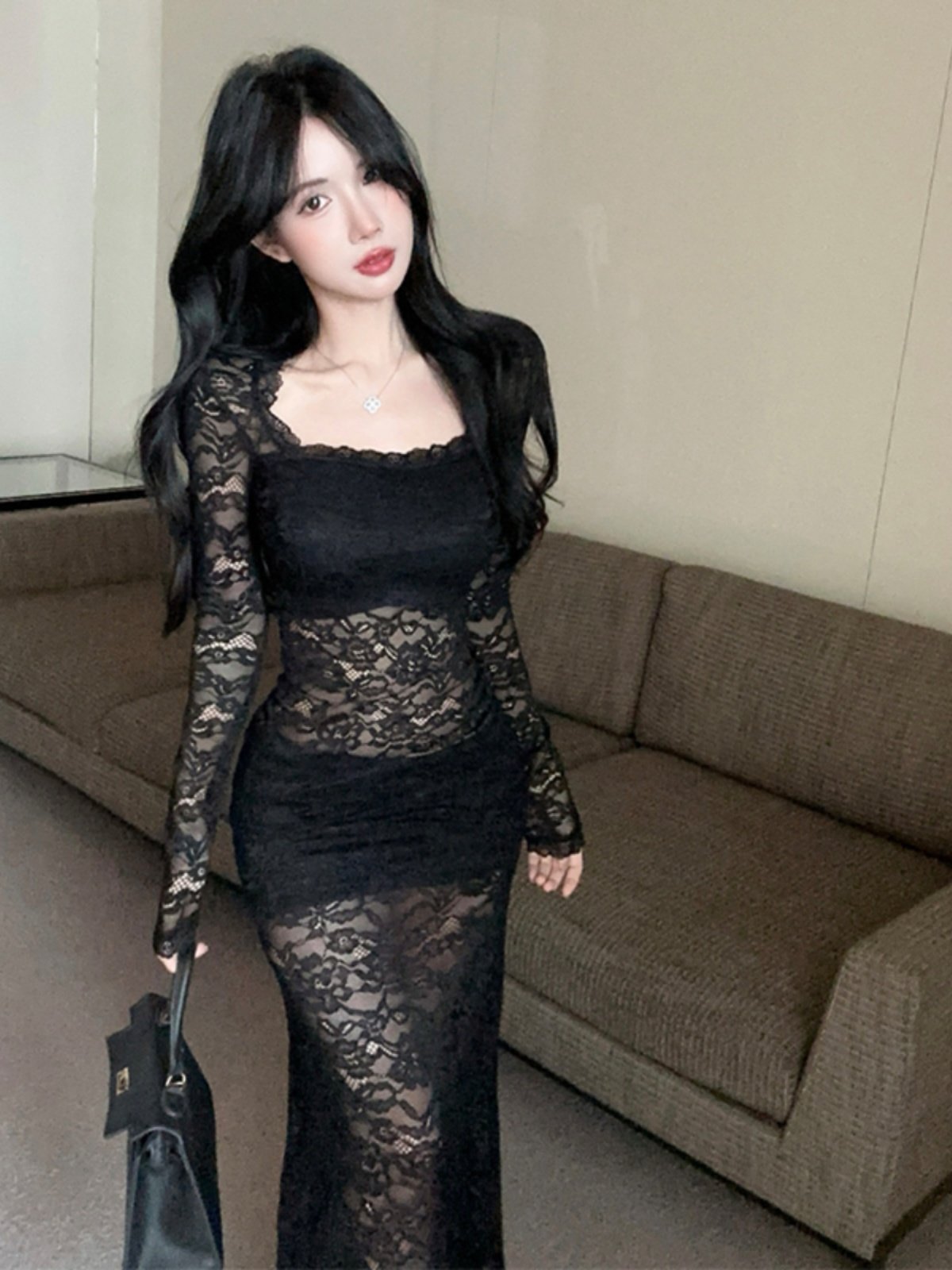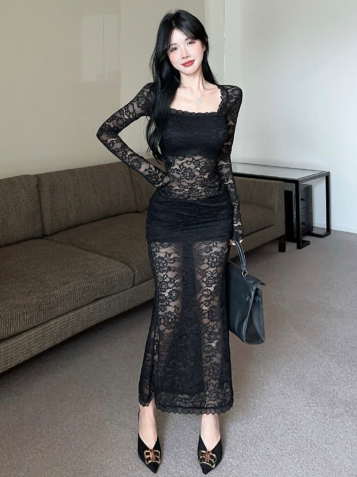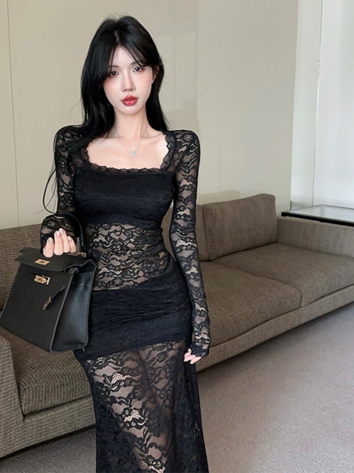 风情万种性感蕾丝连衣裙女早秋季