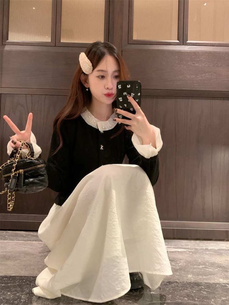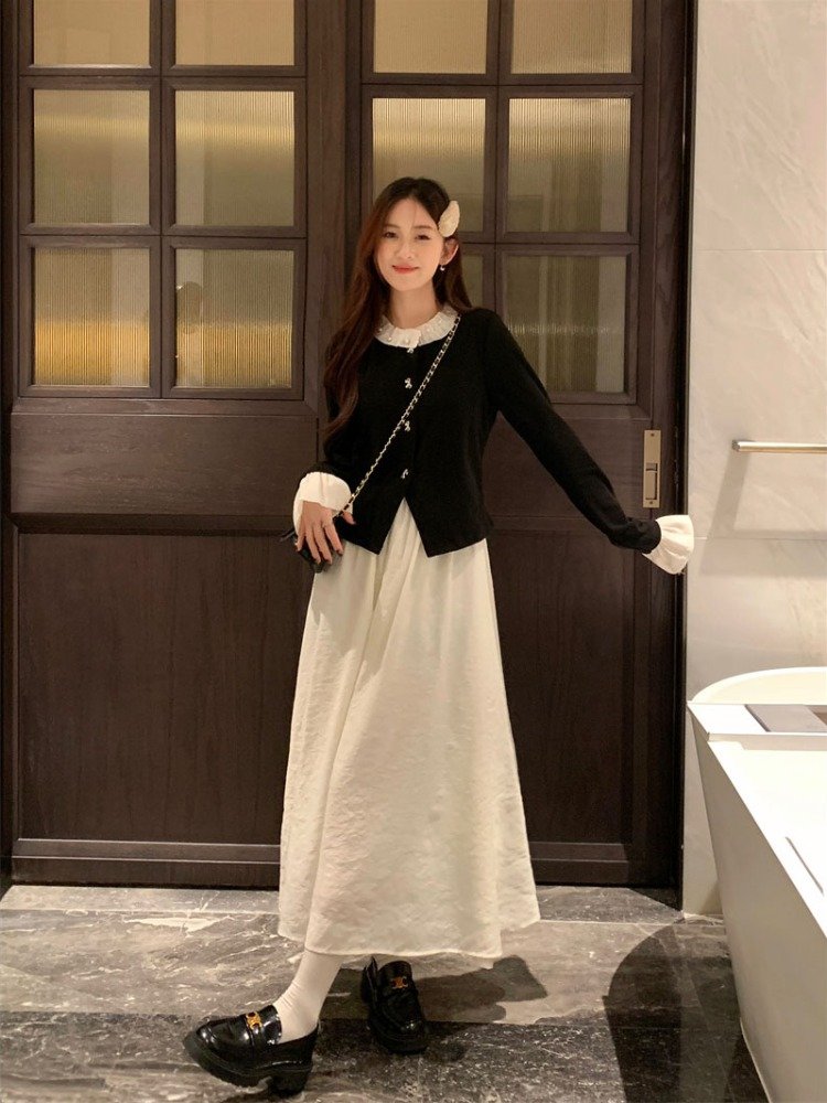法式气质富家千金风假两件连衣裙女