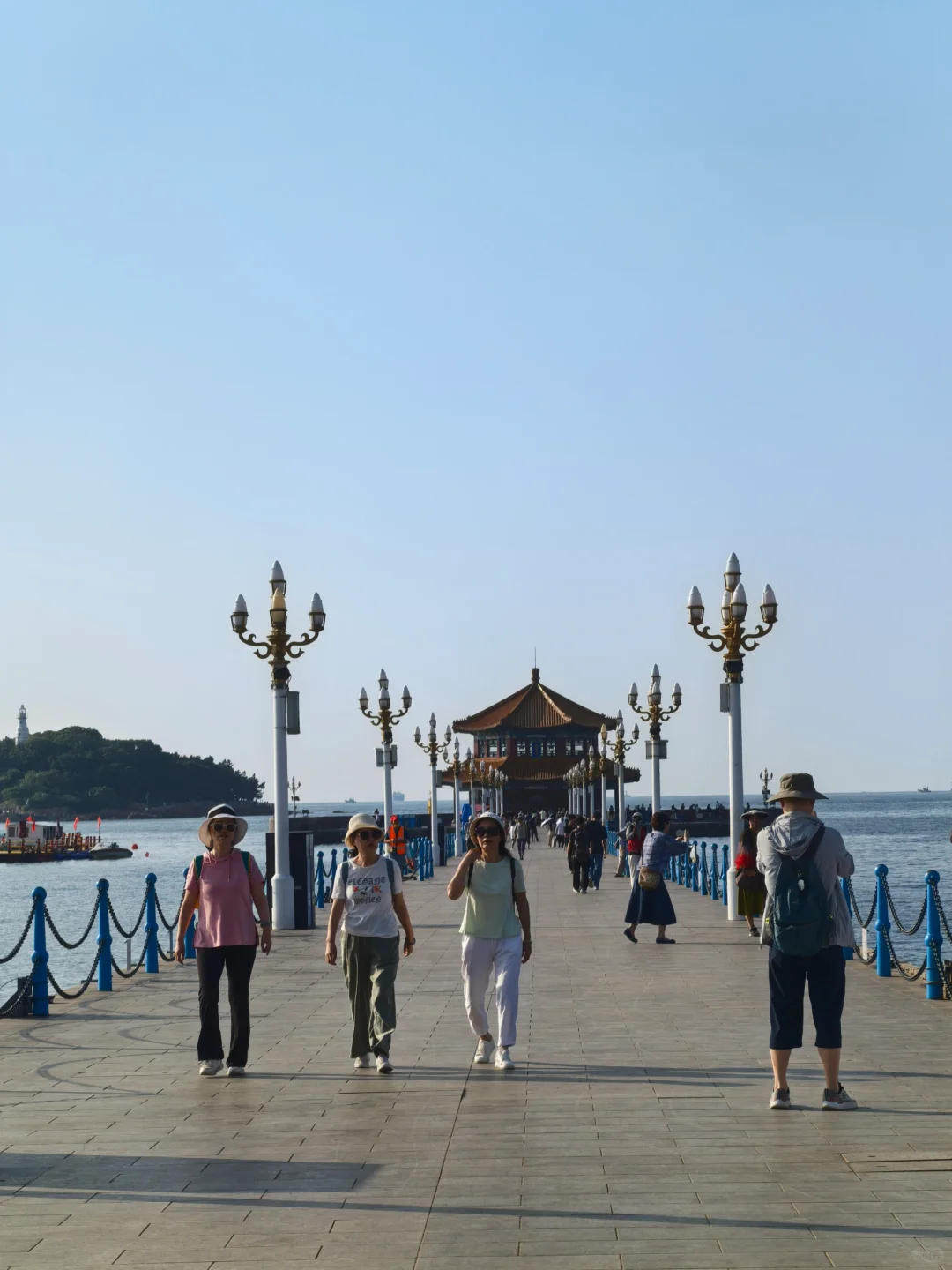 升温了[失望R]建议早6~10点,下午3点以后出门,海边必须防晒。夏装出游。栈桥人很少。