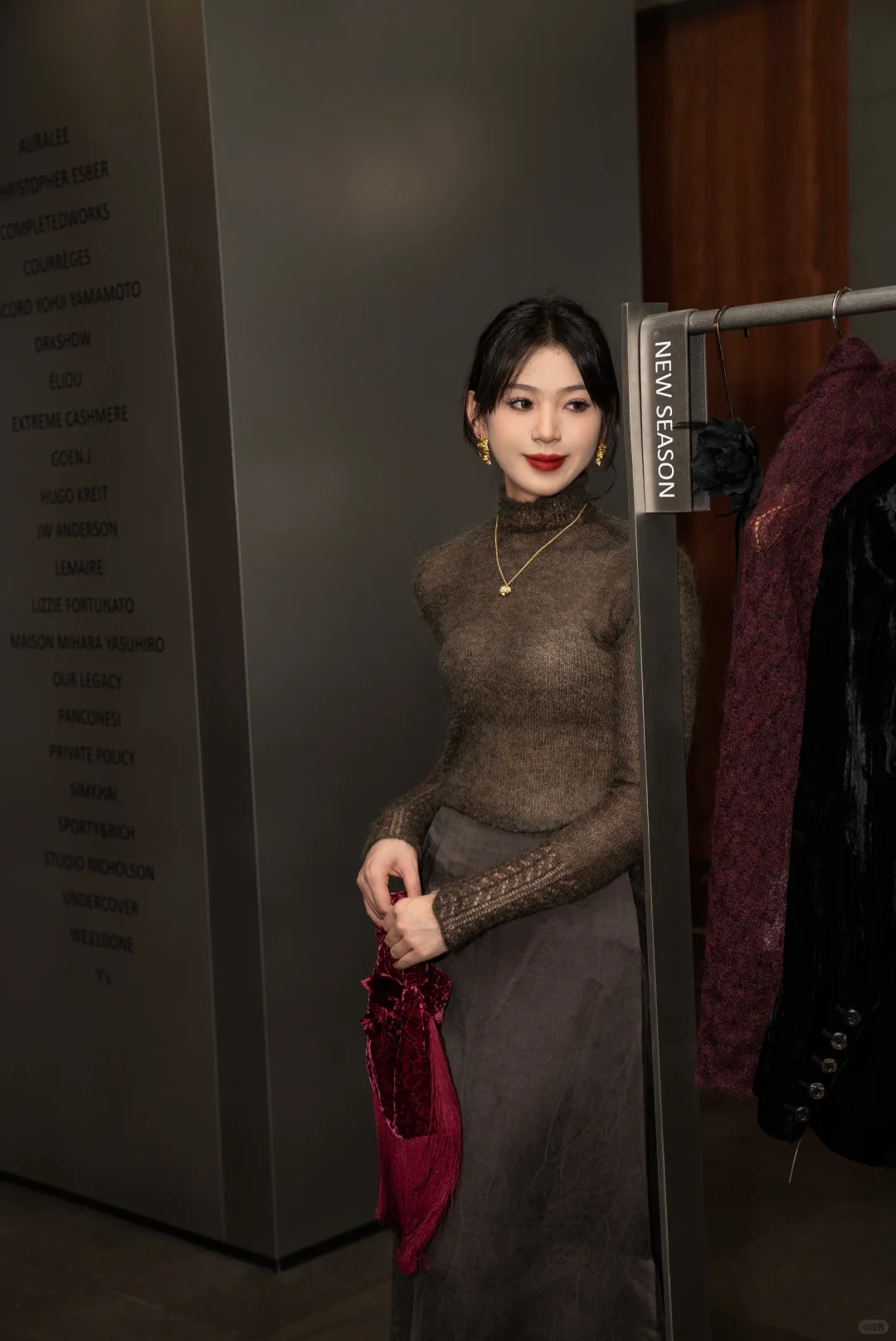 今年秋天真的很爱复古优雅风的穿搭 优雅 知性 复古 文艺又不失时髦 今天YAYI的这一身就很符合我心中复古优雅的感觉 浓郁的可可配色,太适合秋天的下午出去喝杯咖啡了~ 听说YAYI的新装置来到了ASSEMBLE 趁着休息赶紧来打个卡~ 新装置真的有点惊艳到我了 用服装面料制成的花藤树 就像是艺术展览一样~~