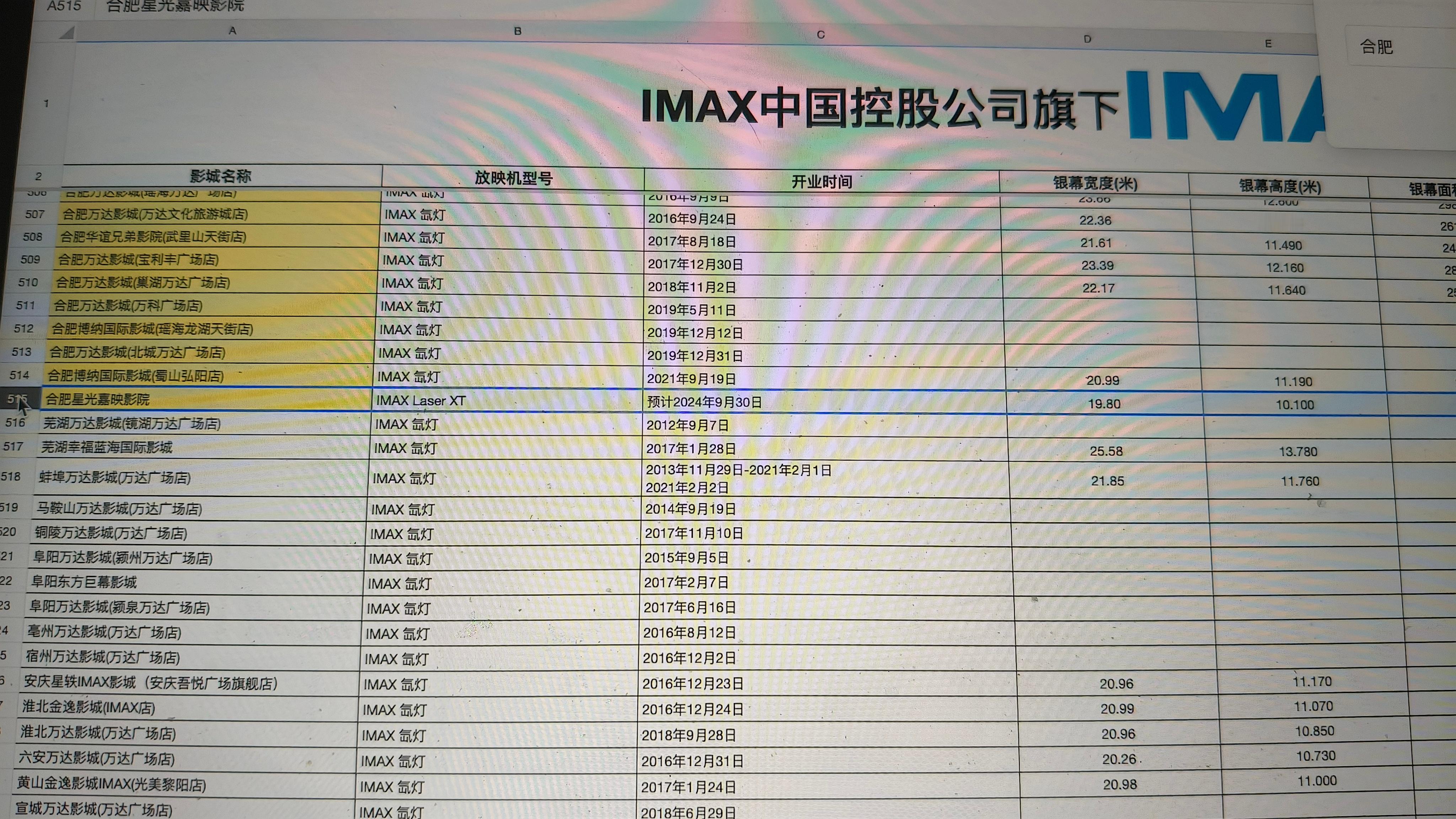 不仅仅是合肥也是整个安徽第一家激光IMAX,确定是三代激光IMAX XT,尺寸是19.8×10.1,198.98平方米。