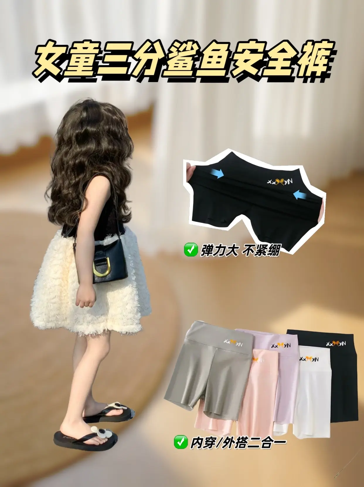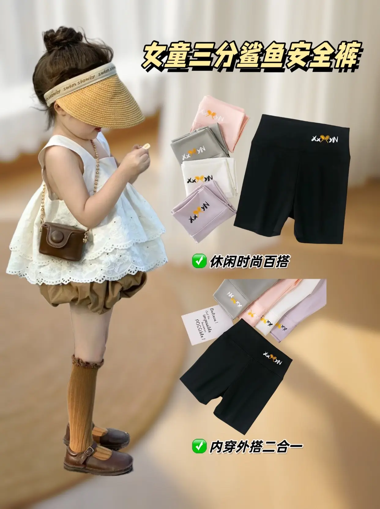 女童三分鲨鱼安全裤。麻麻们,开学了,给孩子准备几条这样的鲨鱼打底裤吧,亲肤透气,款式大方,内穿外搭都好看,多色可选