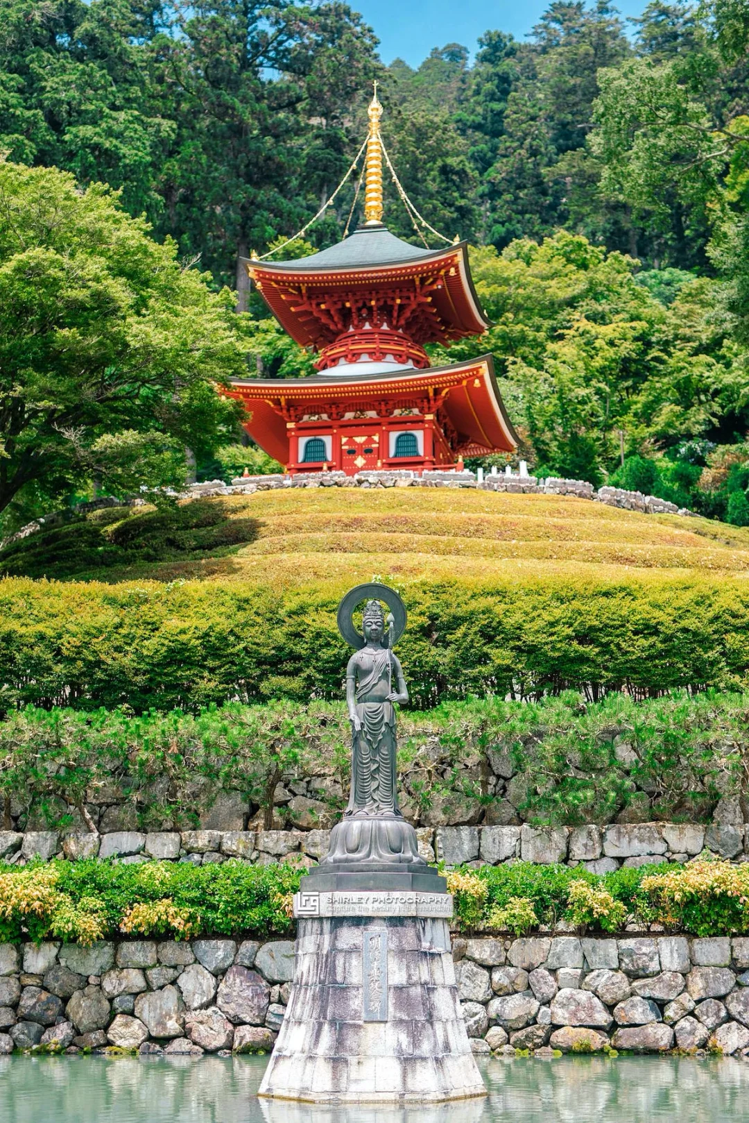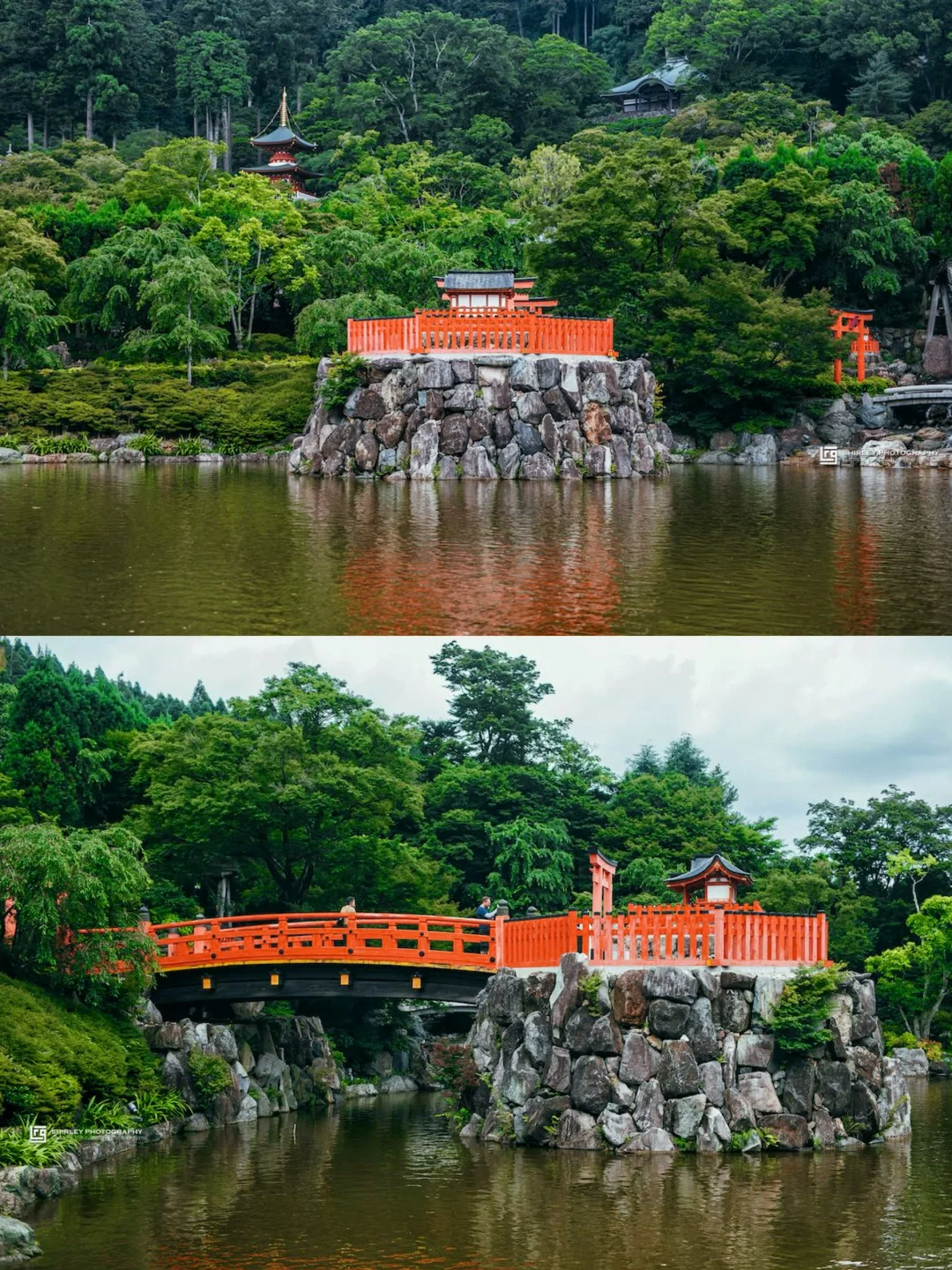 ▫️穿过山门,面前是水气浮动的弁天池,是胜尾寺除了达摩外的另一大标志。