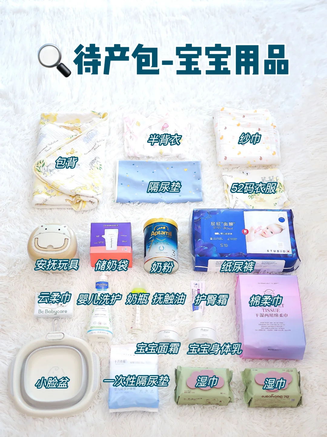 上面的物品在图中列得很详细了,姐妹们按照上面的清单准备就可以。很多姐妹纠结奶粉要不要备,按照我的经验备上更好。我刚生完身体恢复慢,奶水也不太够,准备一罐奶粉完全是刚需。😊