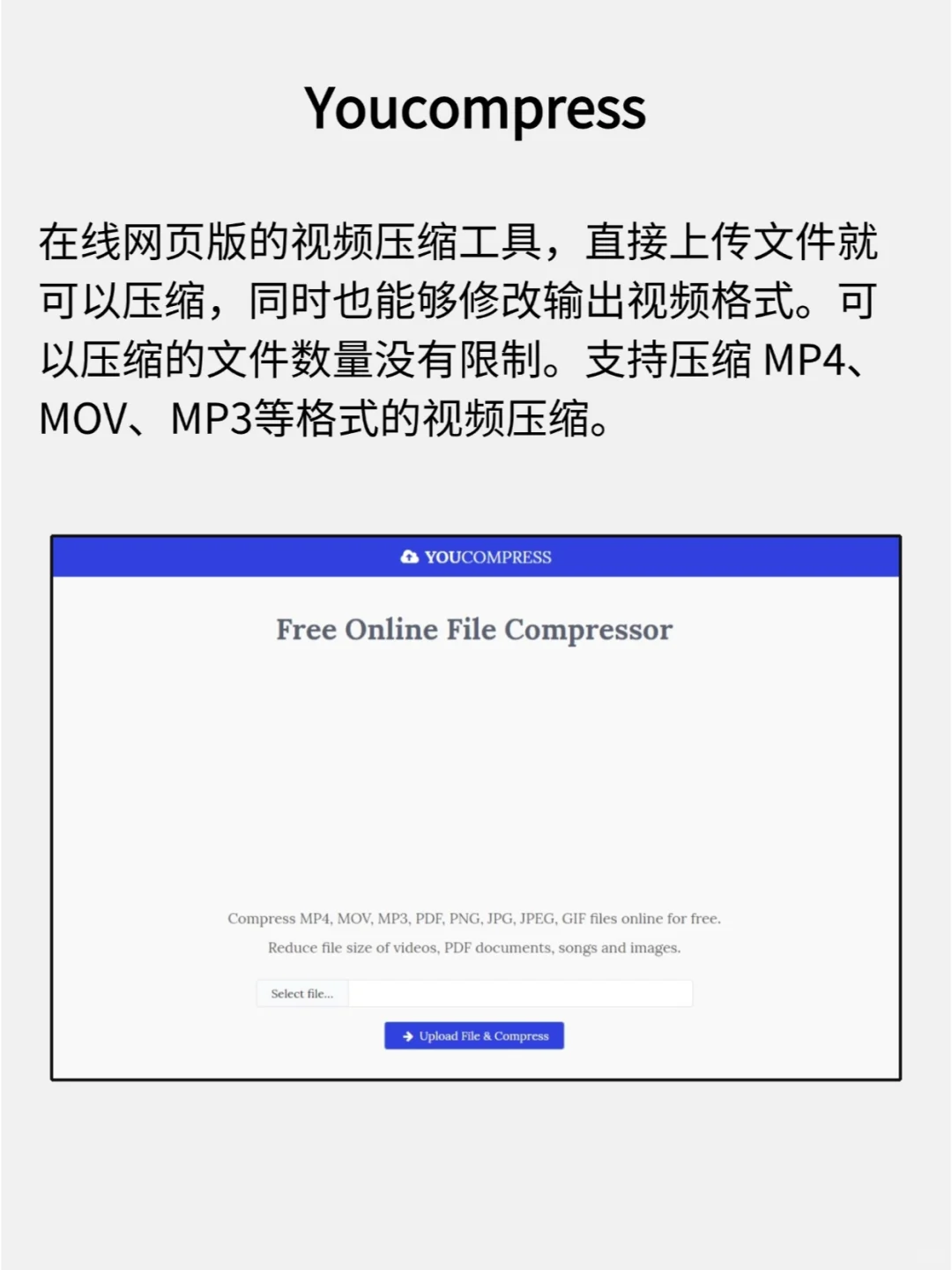 支持 1000 多种文件转换, 📢 可以转换视频、图像、音频文件或电子书,在线视频压缩工具,只要选择文件,即可一键上传压缩。