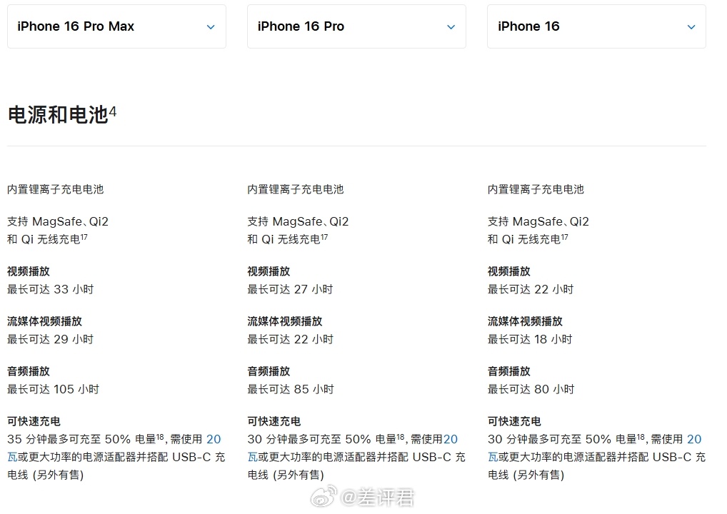 #iPhone16最高支持45W充电#?我去查了下 3C 认证,确实写了“5-15VDC,3A 最大”。而苹果官网的意思是,要达到宣称的充电时间,至少得用 20W 功率充电头,没说最大充电功率[doge] 难道说是因为今年做了散热结构,所以支持更高充电功率了?