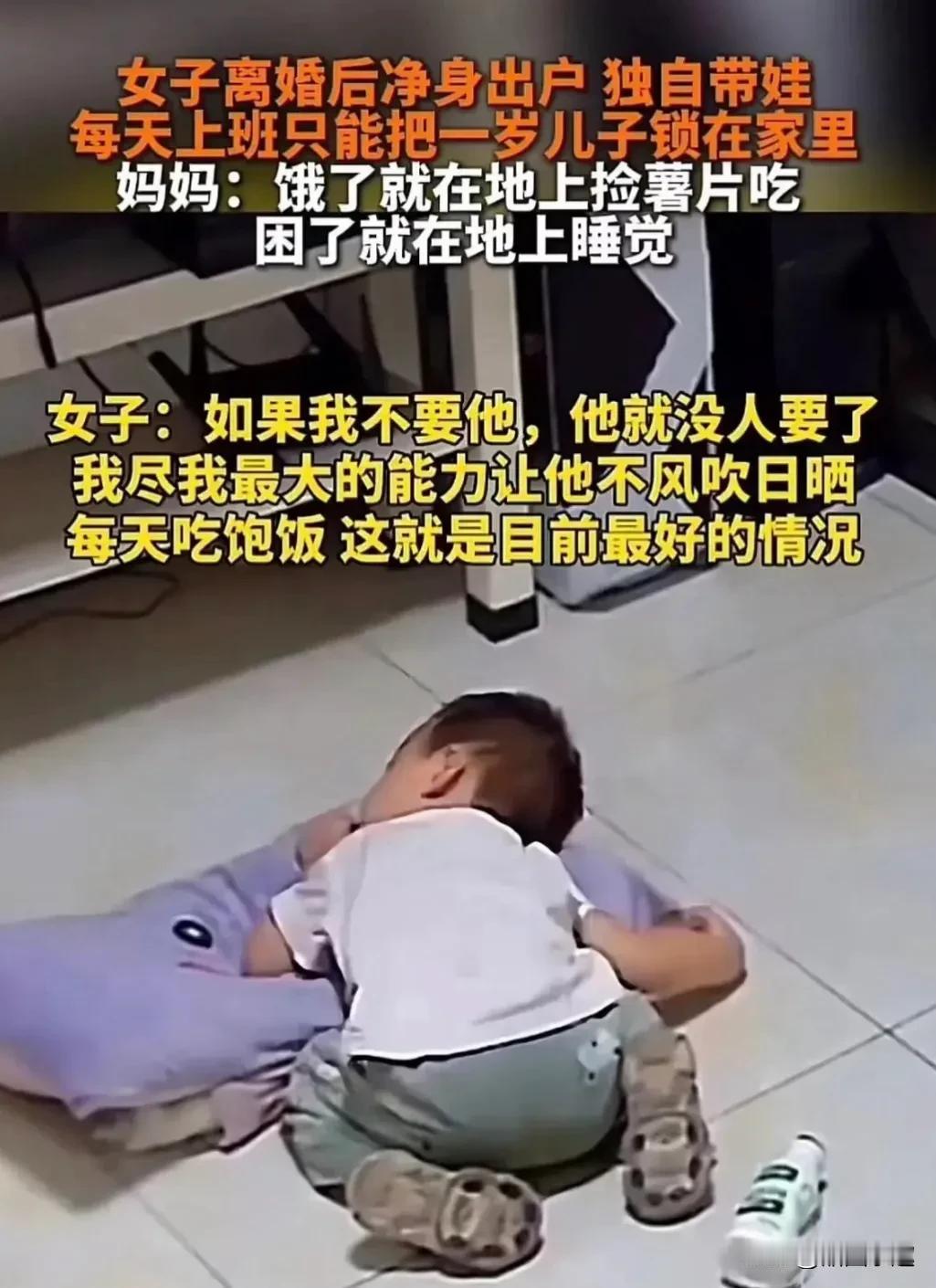 一位母亲的抉择!这世间之事,大抵总有诸多无奈罢。那女子小芳,曾怀着对美好生活的憧憬踏入婚姻,与丈夫张强携手,原以为能相濡以沫,共度漫漫人生。 孩子的降生,本应是幸福的延续。可谁能料到,那丈夫竟渐渐露出好吃懒做的本性,更有甚者,对小芳肆意施暴。这日子,仿佛陷入了无尽的黑暗,小芳在绝望与无助中挣扎。她也曾彷徨,也曾忍耐,可那生活的苦水却越积越多,终于,她无法再忍受了,毅然提出离婚。她深知,若继续在这泥沼中,未来只会是一片灰暗。 而孩子,是她心中最放不下的牵挂。她不敢想象,孩子若留在丈夫身边,会遭受怎样的磨难,那丈夫定会将心中怨气撒在无辜的孩子身上。于是,她下定决心,无论如何也要带着孩子离开这令人窒息的家。为了孩子的抚养权,她选择净身出户,那意味着要割舍过往的一切,可她觉得,只要能护孩子周全,这又算得了什么呢? 之后,小芳带着孩子在外面租了一处小小的房子。生活的重担如山般压来,她不得不出去工作赚钱。孩子还小,身边又无人帮衬,她只能咬咬牙,狠心地将孩子独自锁在家里,让孩子看看动画片,走之前也会给孩子备好一些吃食。 每当她稍有空闲,便会急切地通过家里的监控查看孩子的情况。那小小的身影在监控里晃动,饿了就抓一把薯片,渴了就喝点饮料,困了就趴在地上沉沉睡去。看着这一幕,小芳的泪水如断线的珠子,簌簌落下。她心中苦叹:“我能做的,也只是让孩子吃饱喝足罢了。” 此事传开,众人议论纷纷。有人说那孩子的父亲真真是枉为人父,也有人问起孩子的爷爷奶奶、外公外婆去了哪里。有网友心疼道,若与这孩子在同一城市,愿意在白天帮忙照看。也有人觉得,虽然妈妈这般不易,但或许可以为孩子准备些热乎的饭菜再出门,或者选择上夜班,这样白天就能陪着孩子,给孩子弄些好吃的,总让孩子吃冷食,总归不好。 我望着这些话语,心中亦是感慨万千。我也有自己的孩子,深知孩子于父母而言是何等珍贵。这一岁多的宝宝,独自在家,不哭不闹,那乖巧的模样,让人看着心疼不已。 也有人提议,小芳或许可以辞去工作,哪怕带着孩子摆个小摊,也好过将孩子独自留在家里。那小小的人儿,独自在家中,内心该是多么害怕呀。 这社会总在进步,也常呼吁人们结婚生子。可如今的托管、教育、医疗等,似乎并未让人深切感受到生孩子的幸福。 但无论如何,小芳那毅然的决心和无畏的勇气,无不展现出一位母亲无私的爱与坚韧的精神。她在努力地为孩子撑起一片天空,只愿孩子的童年能远离暴力与贫困的阴霾。这样的母爱,是如此深沉而伟大,又怎该被指责呢?至少,她紧紧地将孩子搂在怀中,没有将其抛弃,这一点,便胜过许多人了。#聊聊孩子教育# #单亲妈妈# #夫妻离婚的时候,孩子到底归谁抚养?# #孩子# #七年之痒是个劫# #情感故事来分享# #情感记事分享# #情感日志分享#