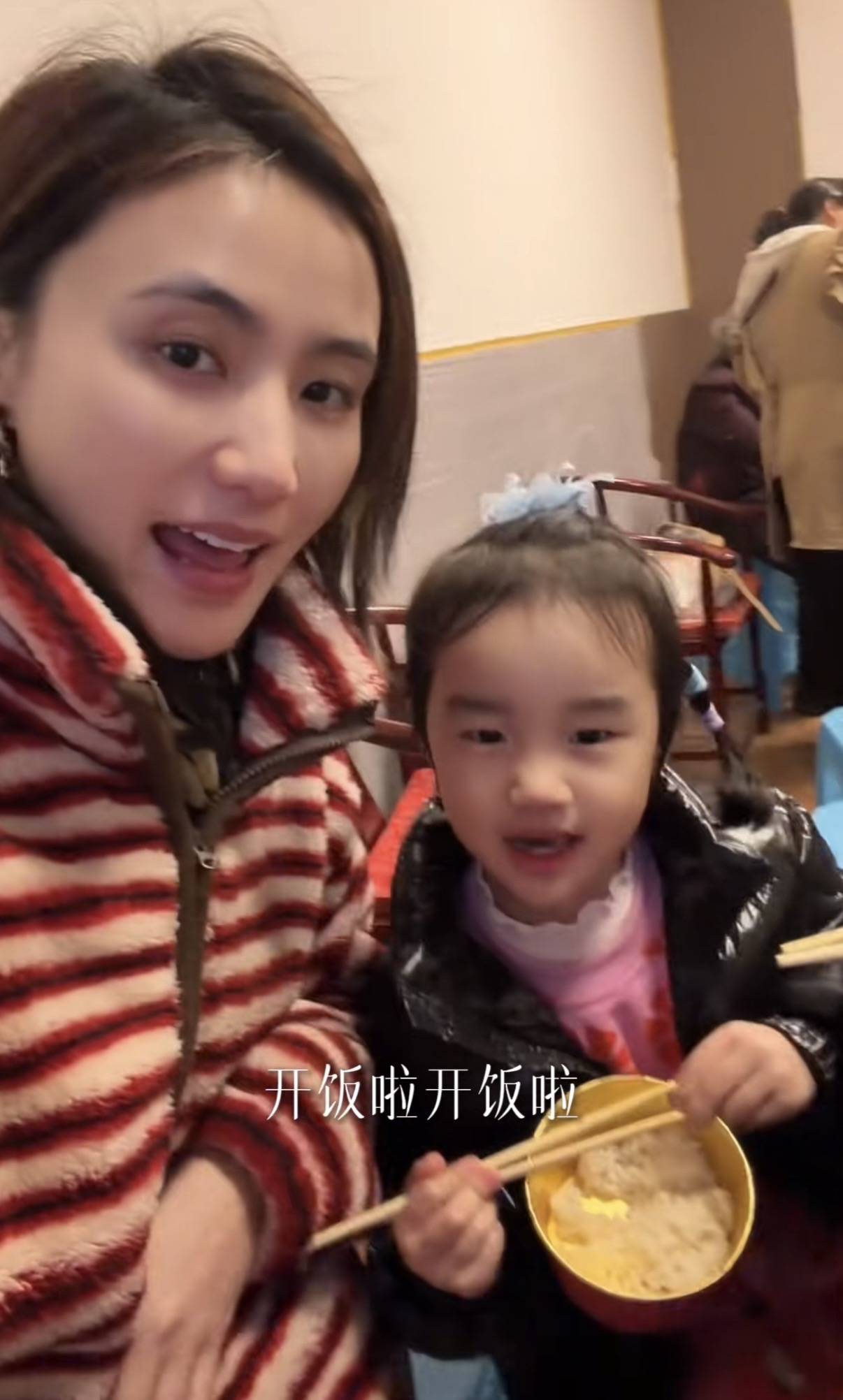 准备好年夜饭之后,一家人就坐在一起吃团圆饭。海哈金喜还和女儿夏夏拍了照片,夏夏手里的像是苞谷饭。就是米饭和苞谷一起蒸出来的,特别香。