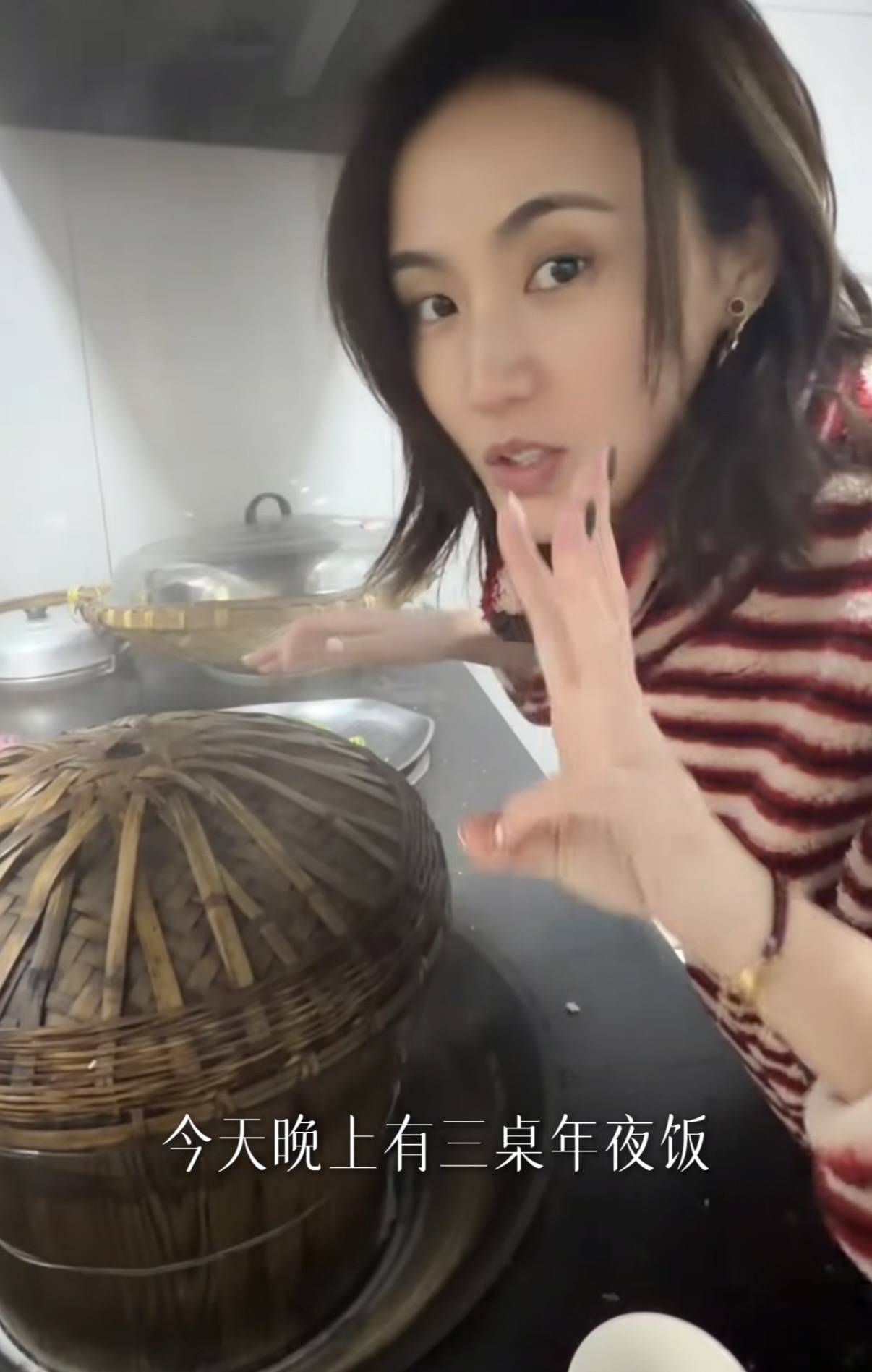 金喜在年前还特意做了精致的美甲,但这并不影响她一个人张罗3桌年夜饭。
