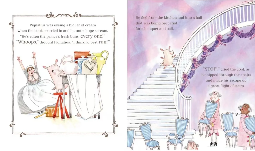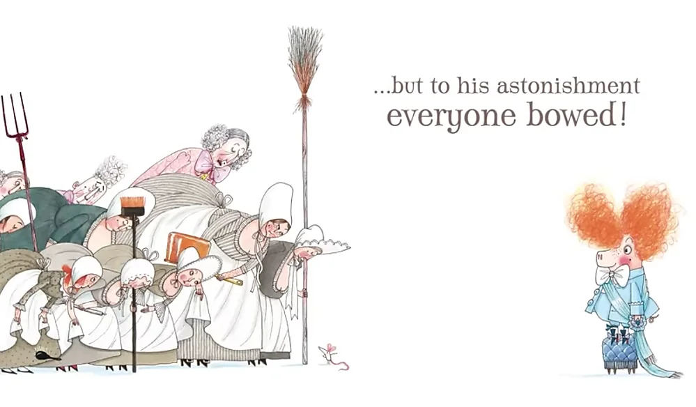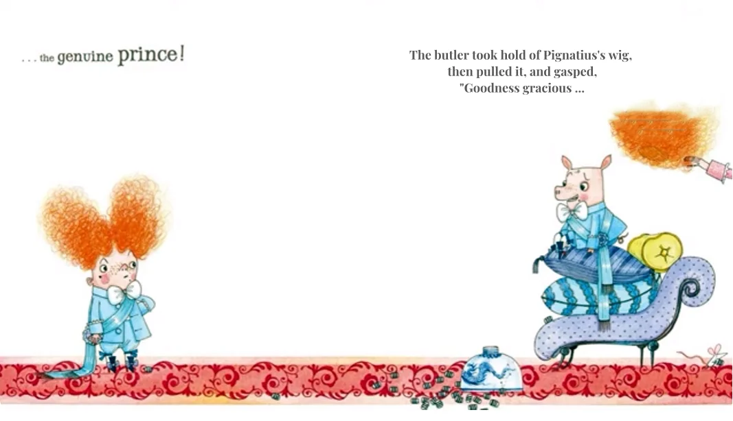 一只小猪来到王宫,戴上假发,穿上华贵的衣服,被误认为王子,受到至高无上的待遇。小猪将错就错,和宫廷里的人玩起了恶作剧。王子发现了小猪,很高兴它能做自己的替身,让小猪每周一打扮成王子去应对“恐龙”——王子的姨母。 这是一个让孩子欢笑的幽默故事,充满戏谑,一切真真假假在各种喜剧冲突中转化为温情与友爱。