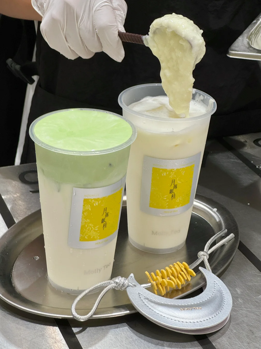 你可以永远相信茉莉奶白的品味!新出的桂花米麻薯尊嘟好好喝!桂花绿茶🍵搭配软糯的米麻薯 糯叽叽的好喝哭 还有开心果桂花酒酿米麻薯!
