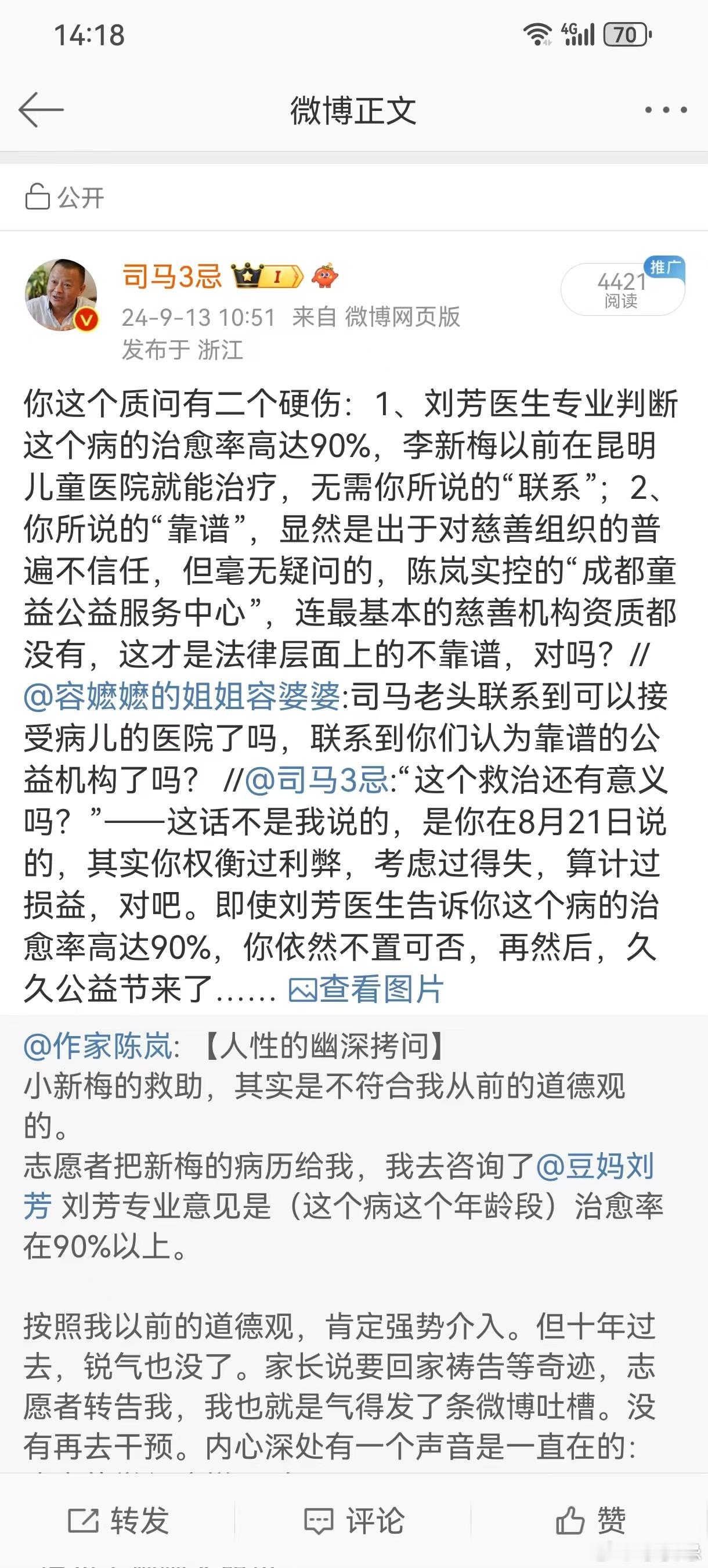 关于发起公开募捐救助病童的话题,才说了没几句话,陈岚团队的老中青三结合妇女团就全部不搭理俺了……