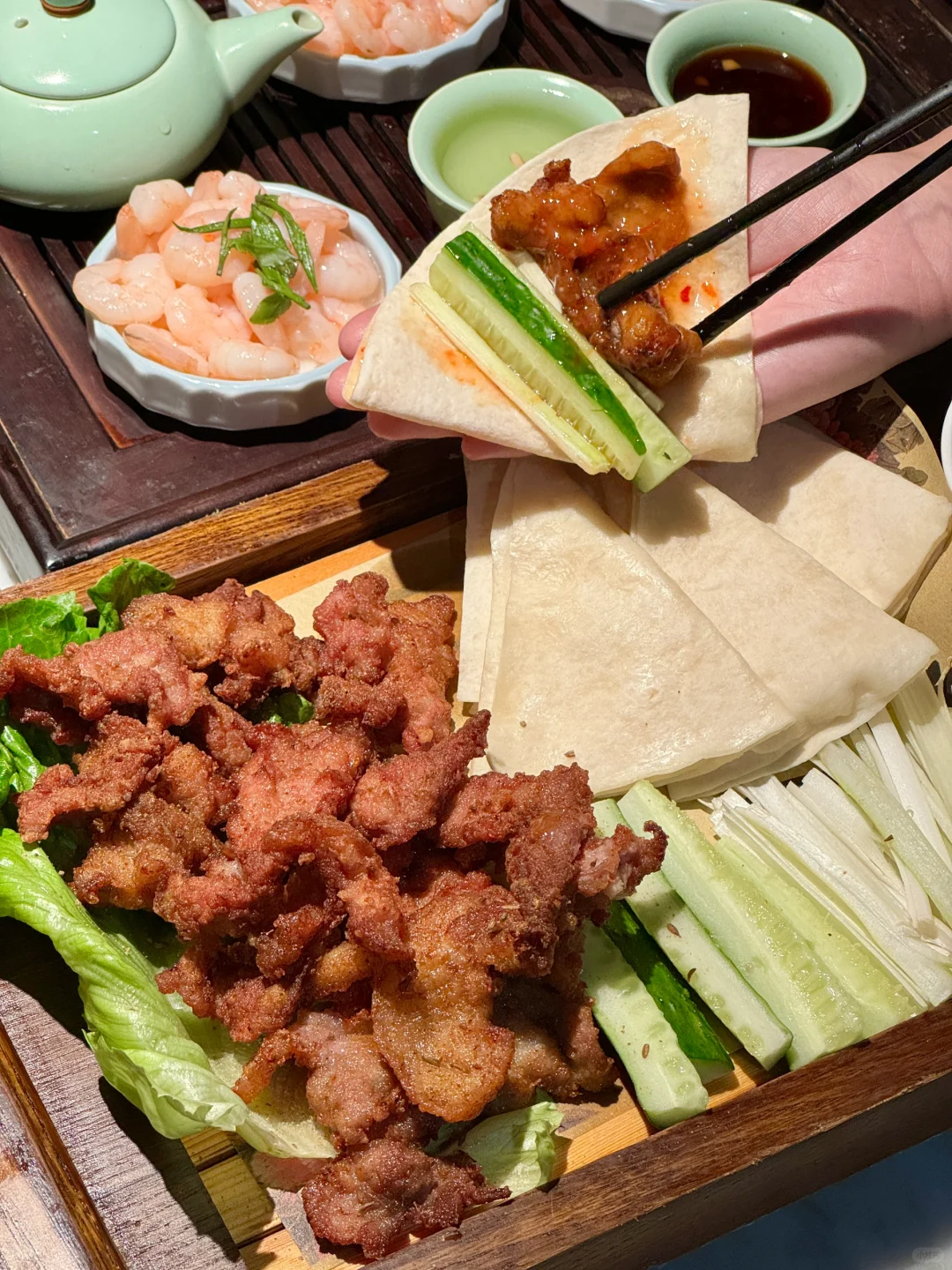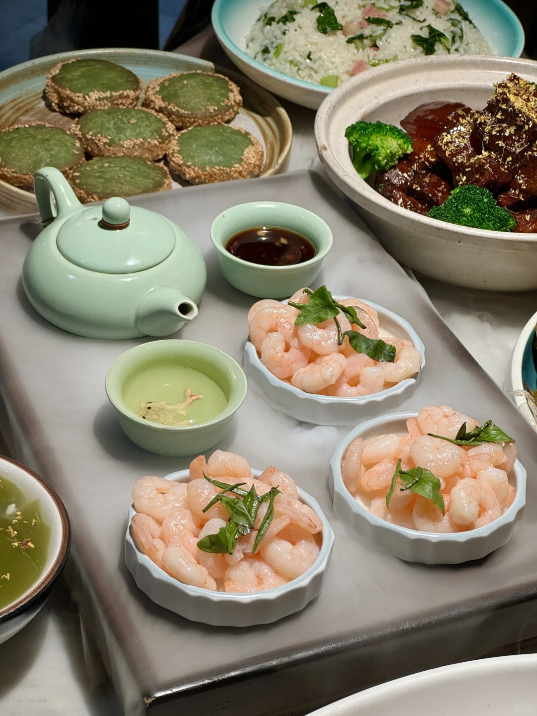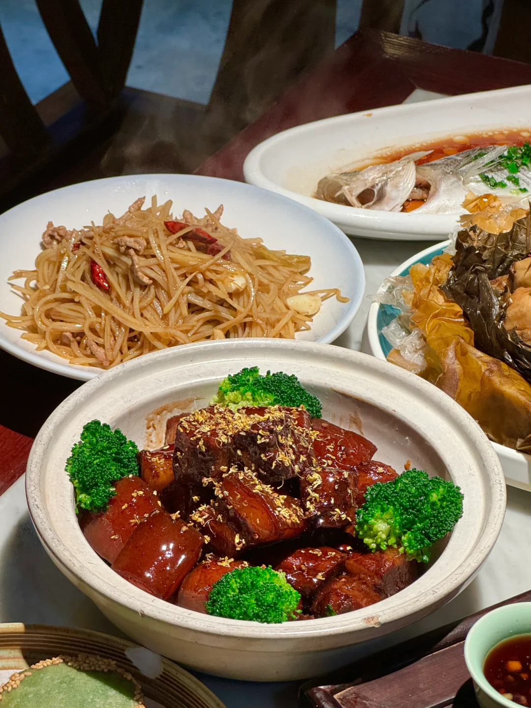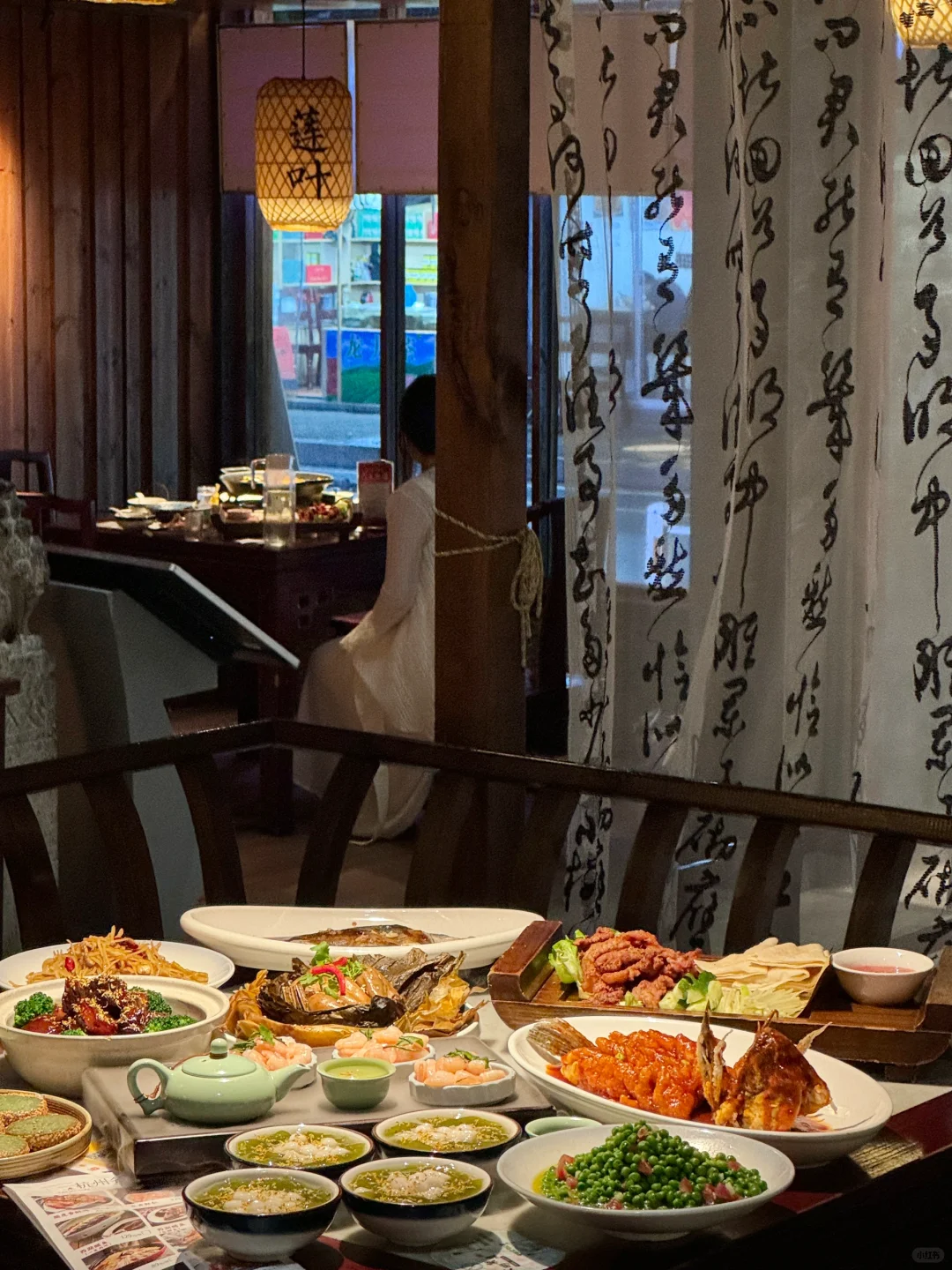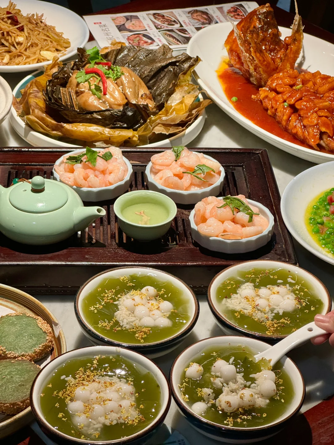 我好爱❤️杭帮菜!这家西湖边的乾堂里我每隔一段时间都要来吃一次~特别是他们家的桂花红烧肉呜呜🥹桂花香侵入到五花肉肉里面 浓油赤酱的汤汁拌饭🍚sei能顶得住! ✔️龙井虾仁 大颗Q弹的虾仁🍤搭配龙井茶🍵和醋汁 仪式感满满 ✔️富贵松鼠鱼 来杭州总要吃一次松鼠鱼!鱼🐟炸好淋上酱汁 外皮酥脆酸酸甜甜吼吼吃 ✔️桂花酒酿 饭后来上一碗桂花酒酿 kuku一顿炫到停不下来 叫花鸡、土烧鱼头、香酥肉…味道都不错 很落胃~