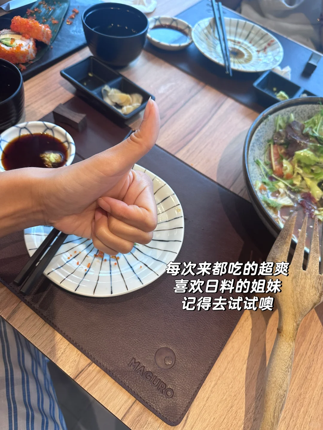 MAGURO是我心中日料榜的YYDS ❤️这家日料深受本地人喜爱 泰国现在已经开了10多家店 三文鱼厚切必点啊❗️❗️ 夹了一块惊呆了 那么厚 太实在了吧 超新鲜 很肥美很甜 ❤️他家主打的是创意寿司,总能找到你喜欢的那款。 每次来记得点不同的 总能得到不一样的惊喜 ❤️他家深受本地人喜爱,饭点儿去基本都要排队。 我最常去central world 店 溜街➕美食一站式搞定 ❤️冰绿茶必点!很解腻无限续 (服务员会疯狂给你加) [耶R]码住地址:central world 6楼