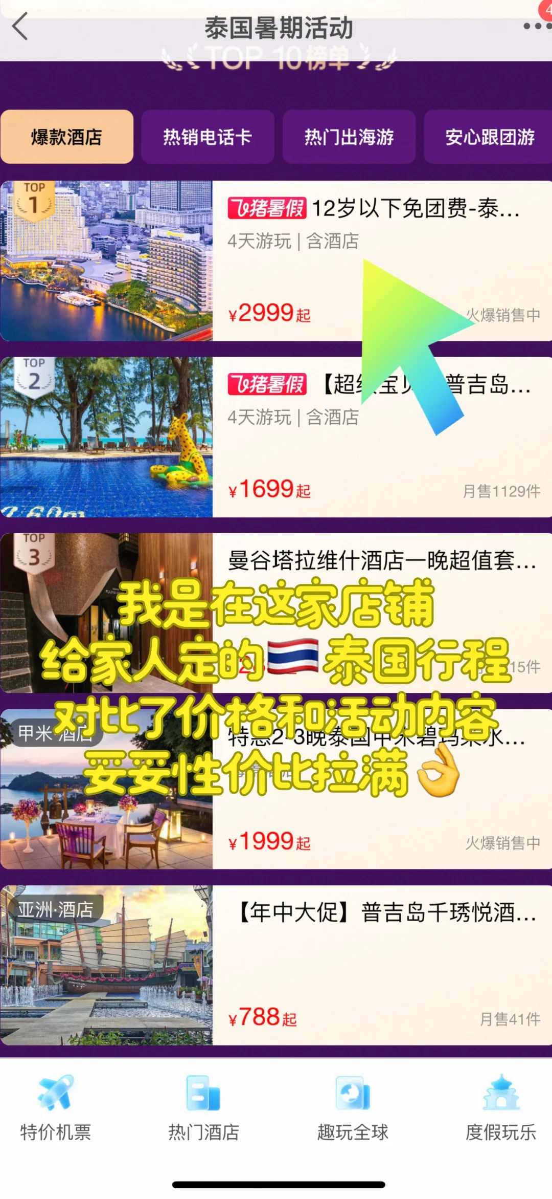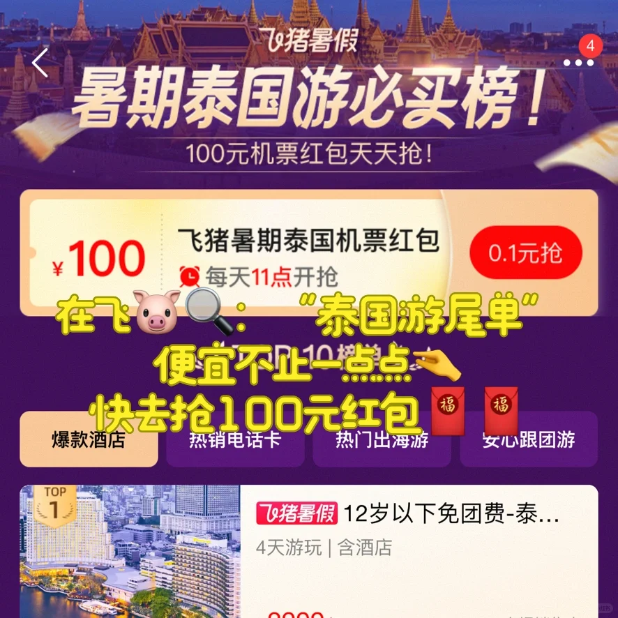 像最近飞猪有个泰国尾单专场,会有100元无门槛优惠卷➕全球特价航班✈ ,组合下单最划算,现在去飞猪/淘宝🔍泰国游尾单 会有很多划算的泰国酒店套餐和泰国纯玩私家团专题,尤其推荐👉芭提雅5天4晚全程五星1599起🤩12岁以下还🆓,这不是白捡一样嘛,果断给我家人报名[大笑R] 顺便在飞猪买了泰国电话卡☎只要20+,准备来一场说走就走的旅行[耶R]