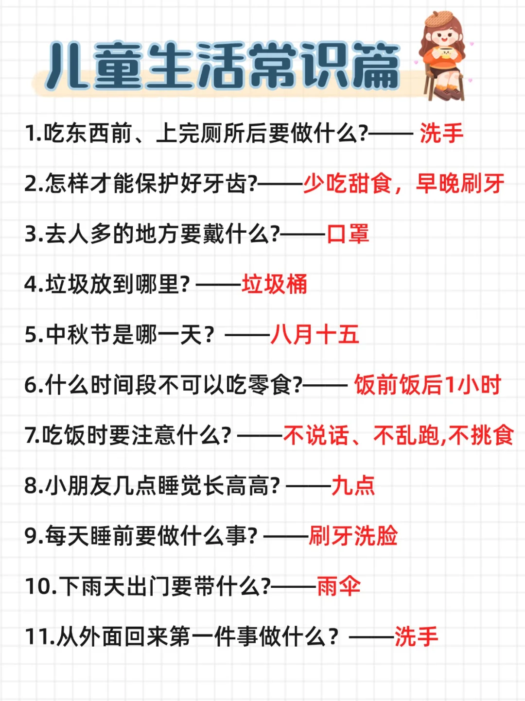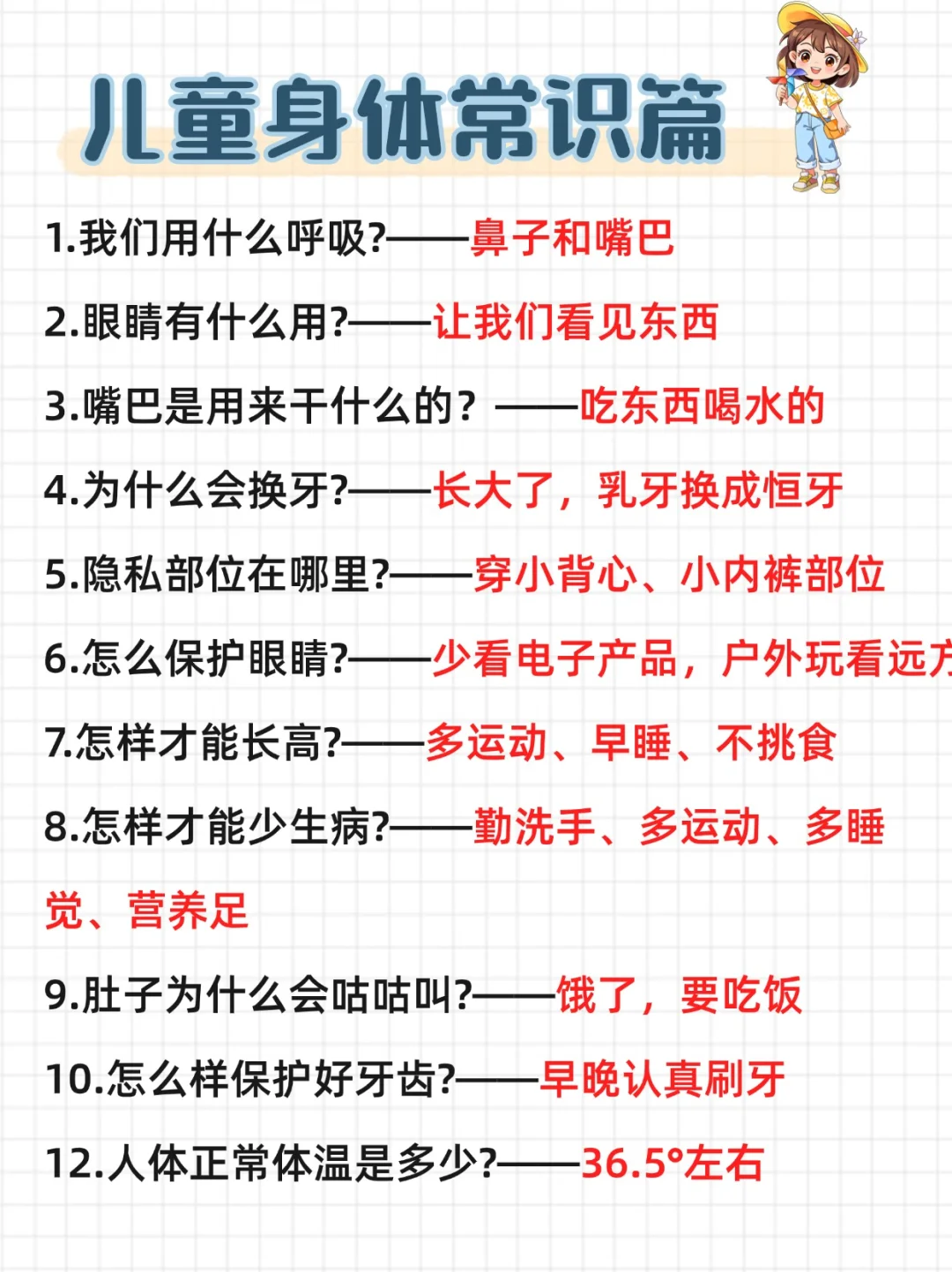 孩子一两岁的时候,正是疯狂探索世界,求知欲旺盛的时候;日常可以说给孩子听,经常磨耳朵哦 🌟生活常识 🌟安全常识 🌟身体知识 🌟地理知识 🌟节日知识 🌟动物常识 ✅我们可以通过你问我答的游戏形式,让孩子快速🔜记住哦