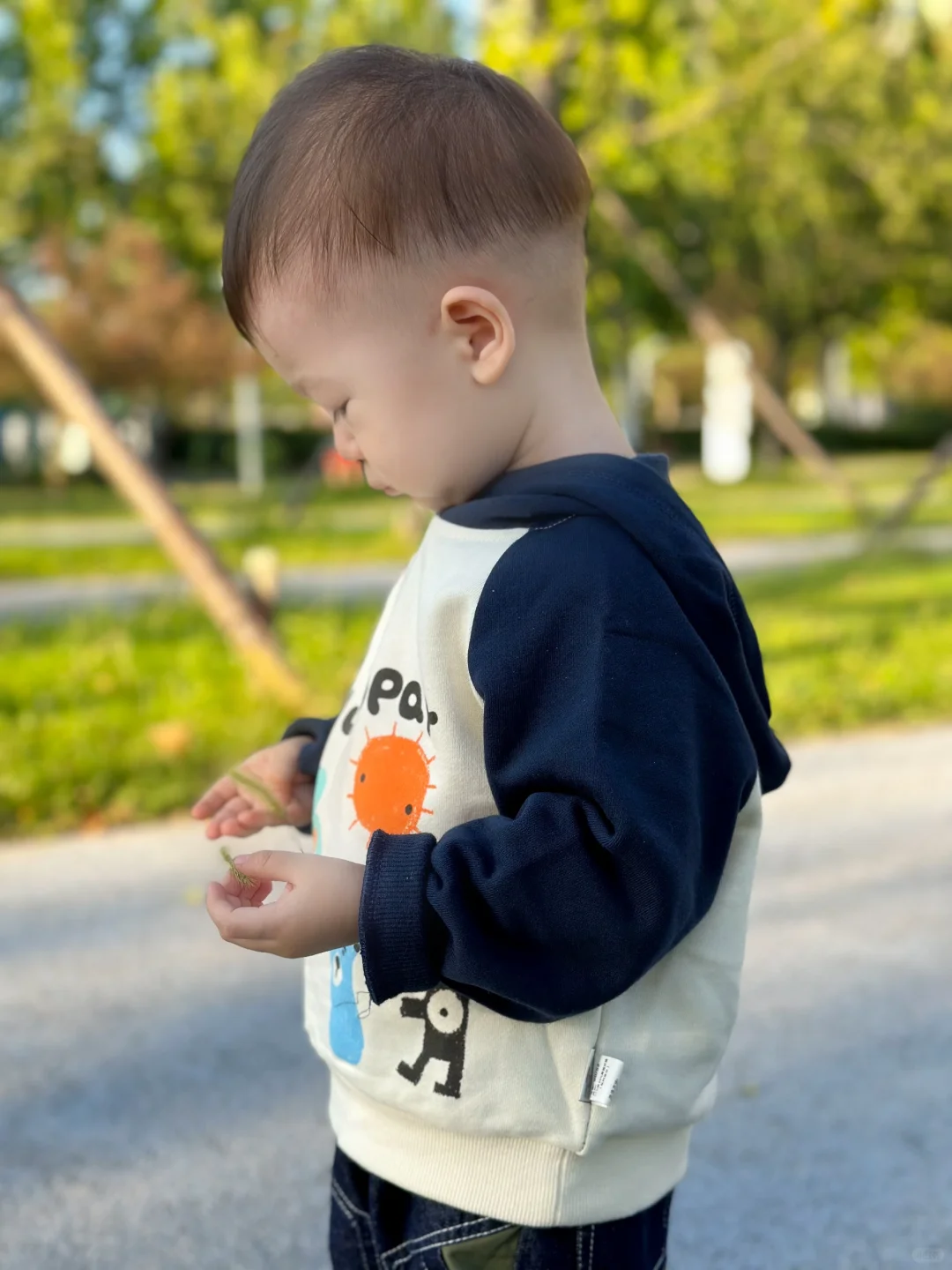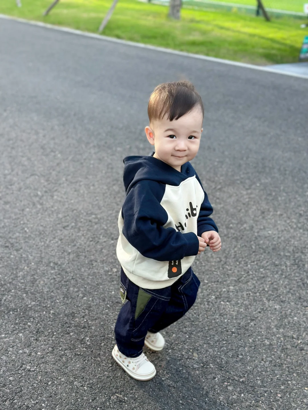 天气☁️越来越冷了 给儿子安排了新战袍 介个连帽卫衣 简直泰酷辣 又软又舒服~