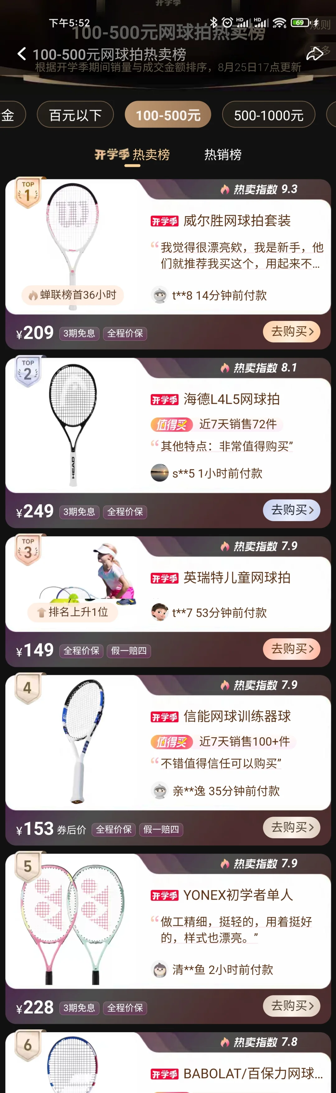 图二是某猫的开学季入门球拍前五榜单