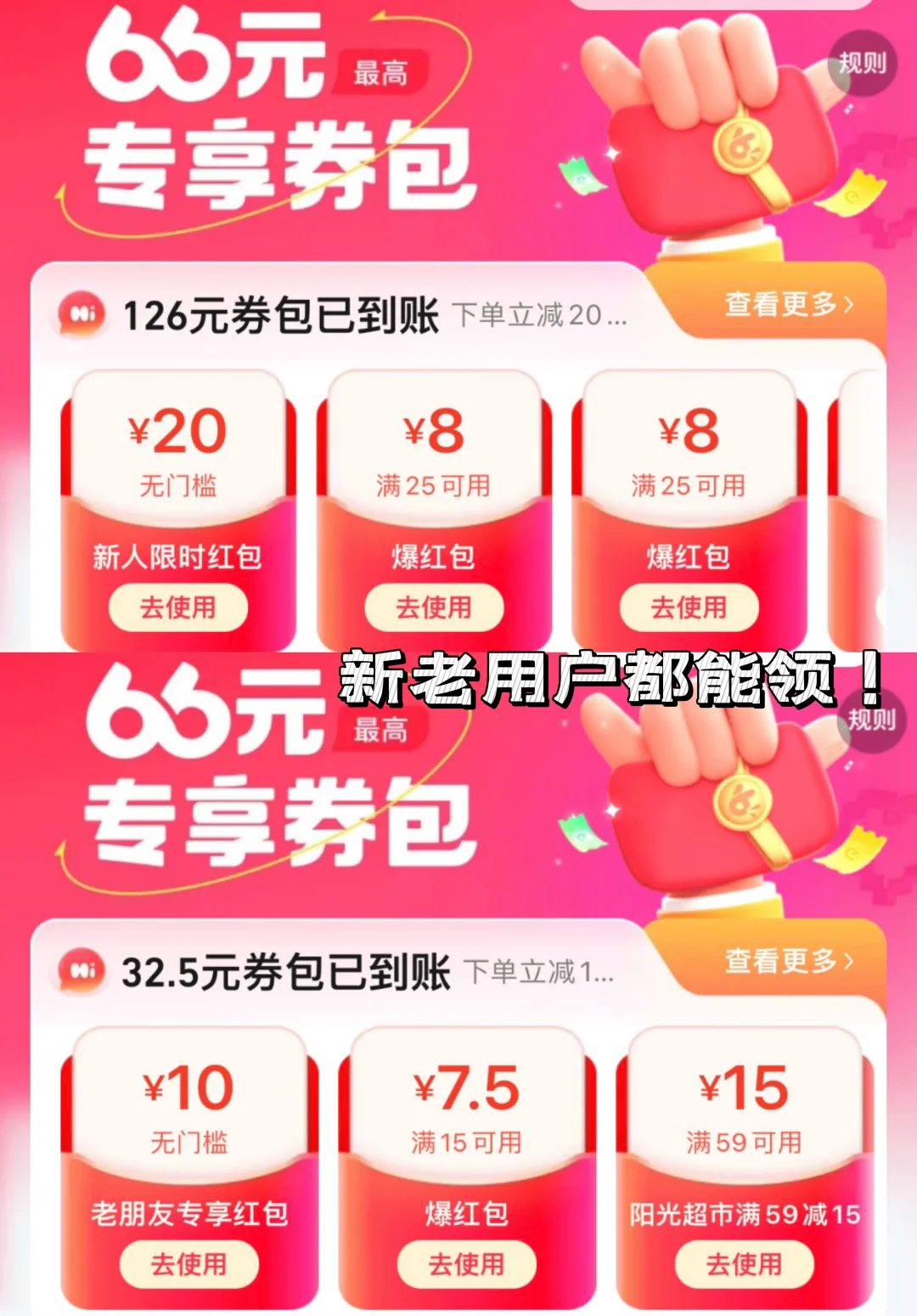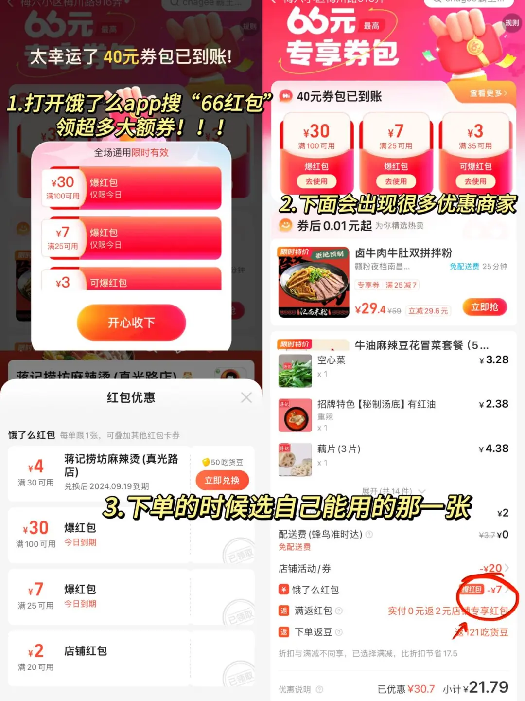 报报报!!饿了么又有大动作!! zui高66元的组合券包谁懂!!! 站内搜索“66红包”新人zui高领无门槛20r! 老朋友zui高领无门槛10r⭕️! 反正能领多少领多少!!省下来的钱都是自己的! 这一桌塔斯汀的外卖只要30r起啊啊啊 这些真是羊毛天堂了! 打工人的一日三餐都被承包了!!快去试试看!!