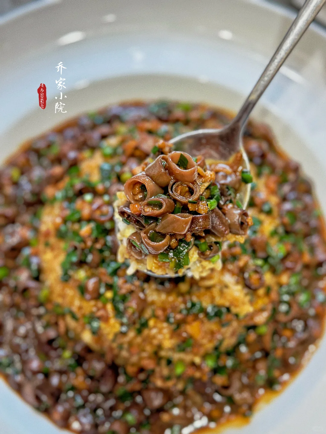 肉沫酱汁浓郁,韭菜提鲜,海肠捞饭的鲜和脆吃过才知道,搅拌均匀来一碗,隔壁小孩都馋哭了🍚