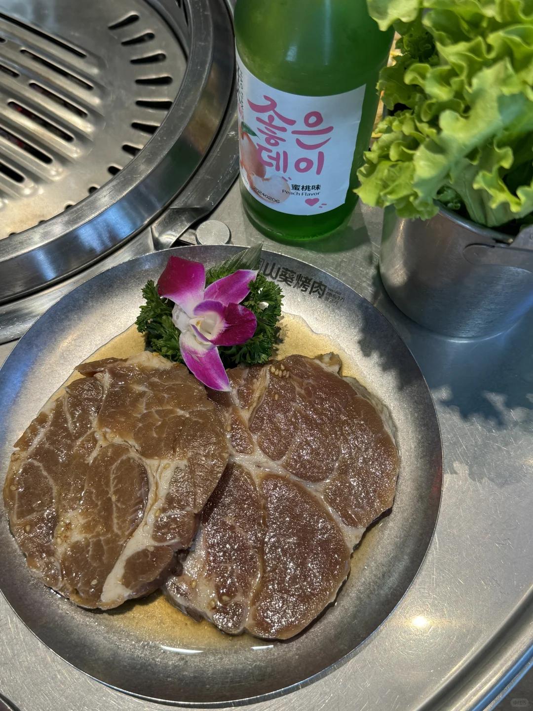 高品质的原切烤肉,肥瘦相间,纹路清晰,油滋滋的肉质,口中都是香浓的牛肉香气,回味无穷🥩