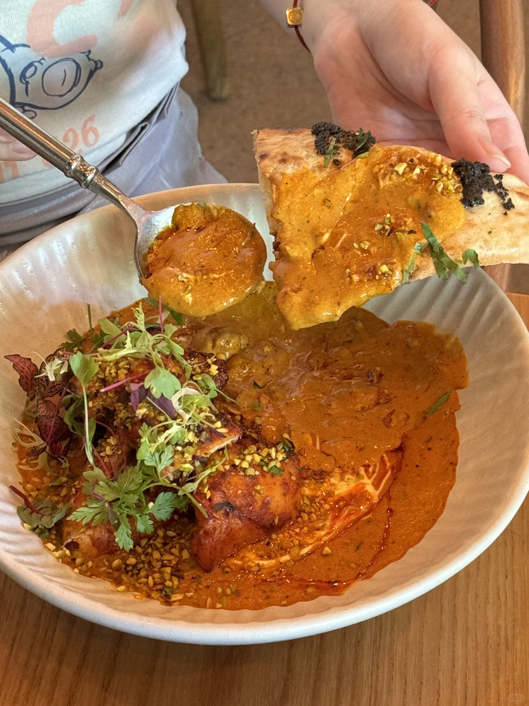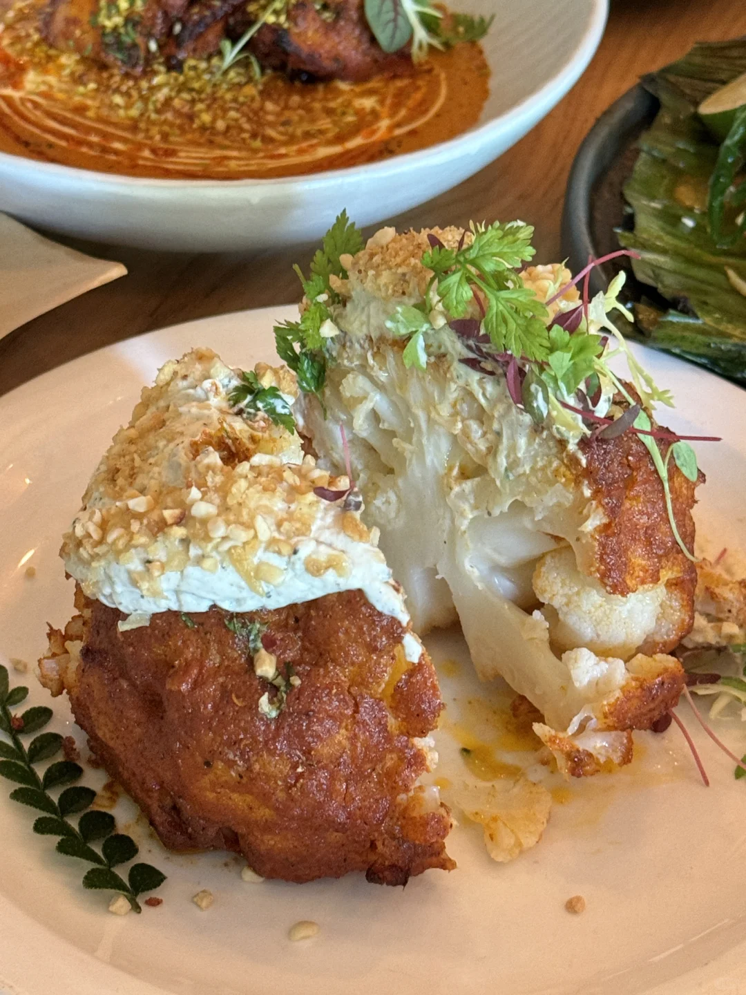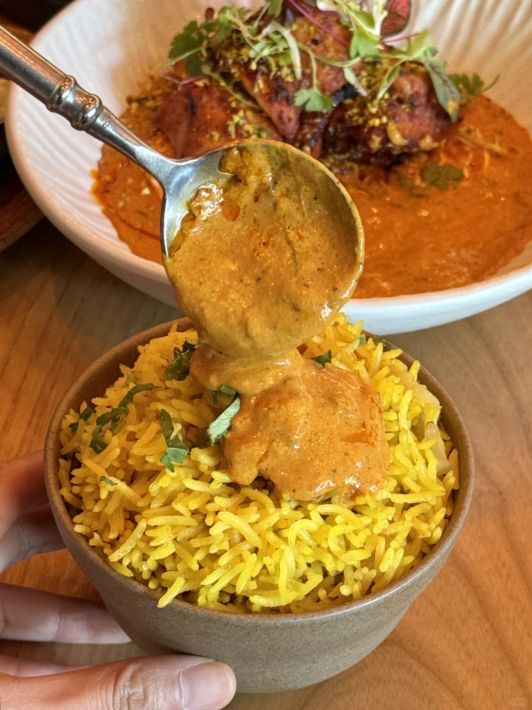 终于来吃这家印度菜bistro了!不愧是王校长来吃过五次的店~干净的明档厨房 印度主厨🧑🍳看着就正宗!被炭烤整颗花菜🥦惊喜到了 切开后搭配酱料吼吼吃 黄油鸡肉咖喱🍛记得点!用来拌黄米饭、蘸馕饼🫓都好吃啊😋下班来小酌一杯也不错😌!周末来记得提前预约喔
