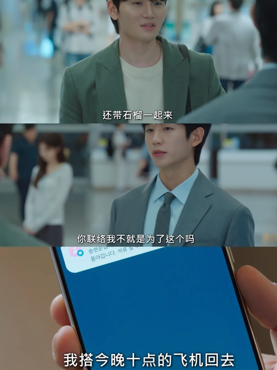 最后男主带着石榴去送✈️的场面,又温情又好笑啊! 前男友:你不会是来送机的,还带着石榴来? 男主:你没有我的📱号,还发信息来特意说,不就是为了这个嘛! 啊哈哈哈哈,前男友的心机,男主秒get,再次感叹前男友是有点手段和效率的,不然男主就不会到现在还单着了! 被截胡不是没有原因的啊! 前男友真的算是一个蛮温柔的人,夸女主漂亮,嘱咐他照顾好自己,最后分别的这一幕,是相当体面啊! 看男主在,只要求了一个握手🤝!但是还被男主嫌弃了! 前男友这篇算是翻过去了,听说十一集会很甜,是不是真的哈?[偷笑R]