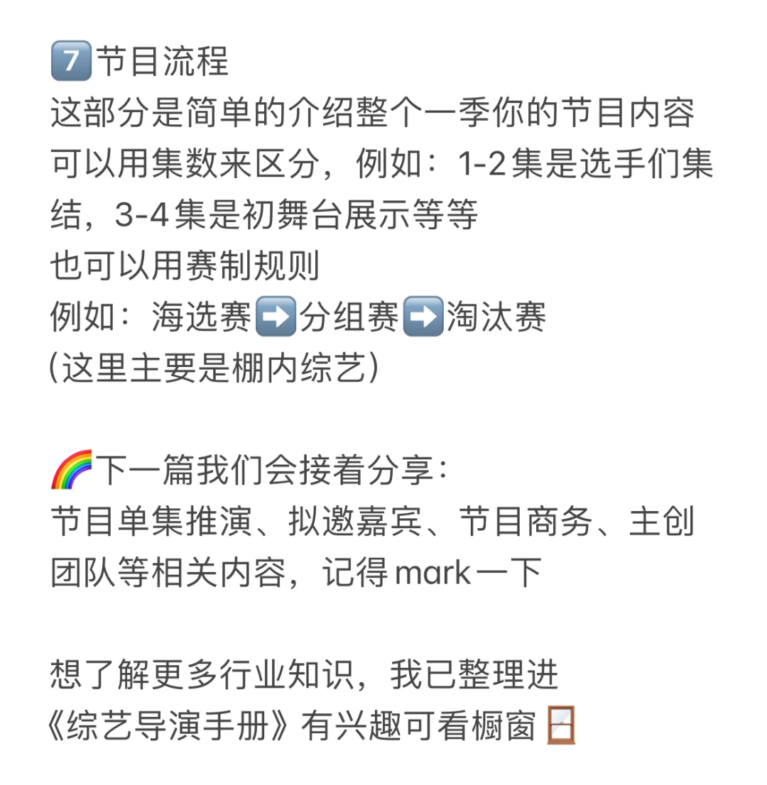 节目单集推演、拟邀嘉宾、节目商务、主创团队等,相关内容,记得mark一下
