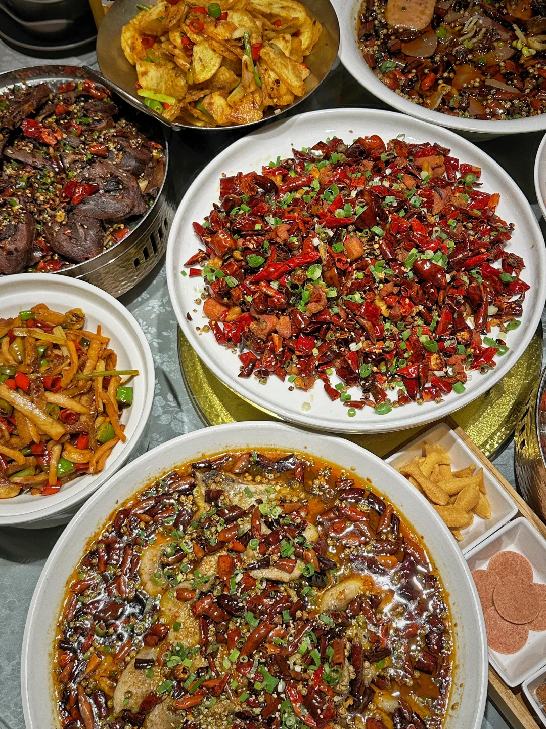 爱吃辣星人有口福了,这家宝藏小店吃了一次就爱上🌶️ 是香>辣啊,好吃s了💯 推荐几个喜欢吃的⤵️ ☑️山城水煮鱼 用的黑鱼,鱼肉鲜嫩,刺很少,麻辣鲜香,太下饭了🐟 ☑️歌乐山辣子鸡 辣子鸡外脆里嫩,量大味美,越吃越过瘾🍗 鸡肉很香一点都不柴,绝了[赞R] ☑️毛血旺 食材丰富,用料很足,正宗川渝味🌶️ 超级入味,血旺很嫩,忍不住多吃两碗米饭🍚 菜品丰富,整体没有踩雷非常好吃👏🏻 价格实惠,值得N刷的小店!! 🏠:山城饭局重庆江湖菜(城市花园店) 📍:市北区汉口路5号
