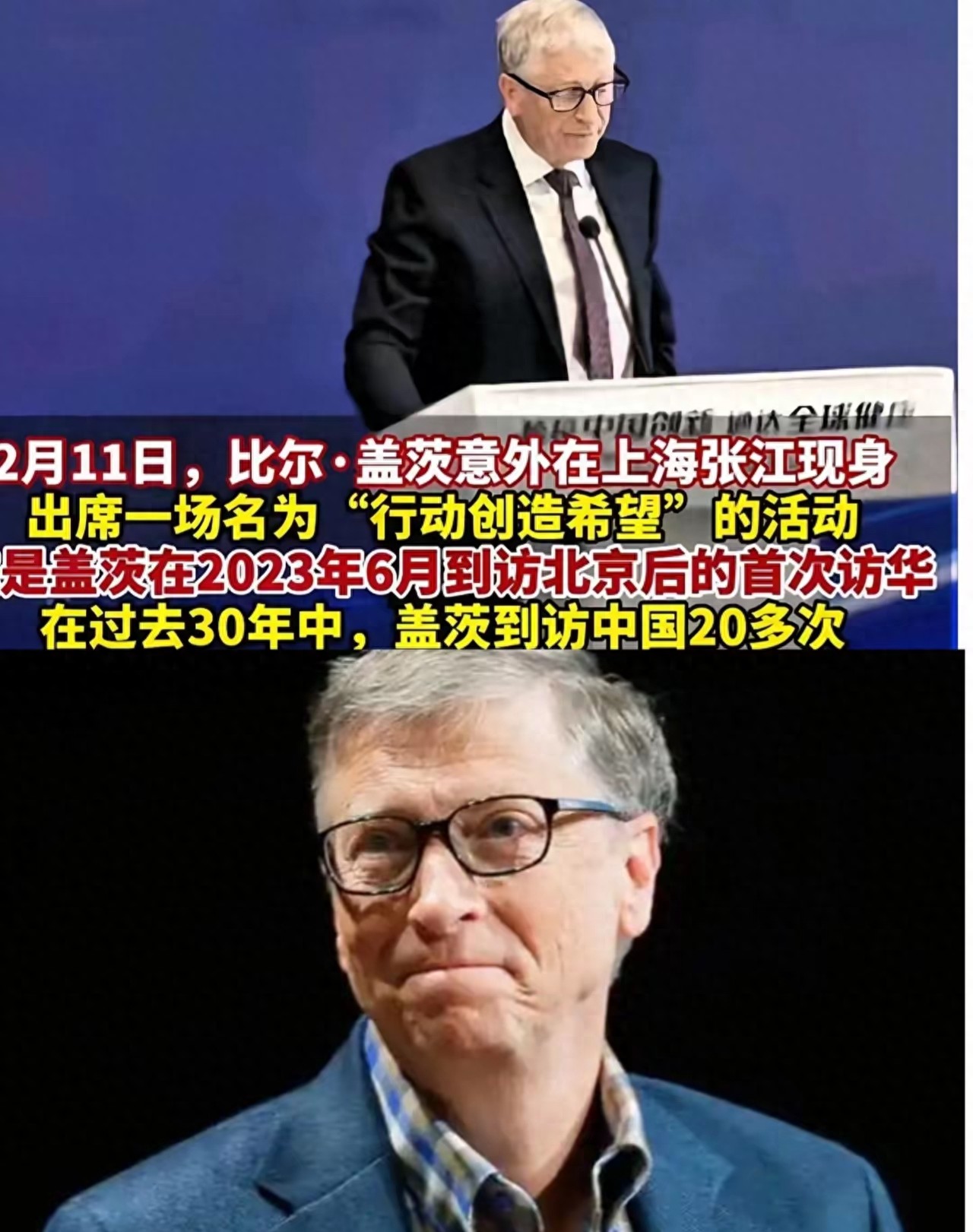 2月11日,比尔·盖茨意外出现上海张江,参加一场“行动创造希望”的活动。