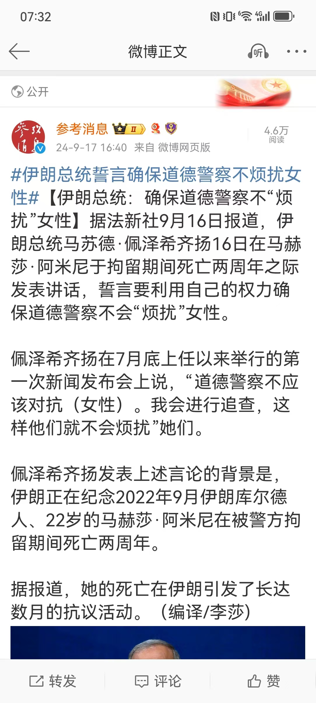 【伊朗总统:确保道德警察不“烦扰”女性】估计伊朗从来没有开设逻辑课,才培养出如此“奇谈怪论”的总统。那么设置道德警察的目的就是逮捕违反伊斯兰着装规定的妇女,监督她们佩戴遮盖头发的头巾,如果真的确保道德警察不“烦扰”女性,那就应该非常道德警察。很明显,设置道德警察的人,也是道德最为低下的人,因为他就不像是女人生的。
