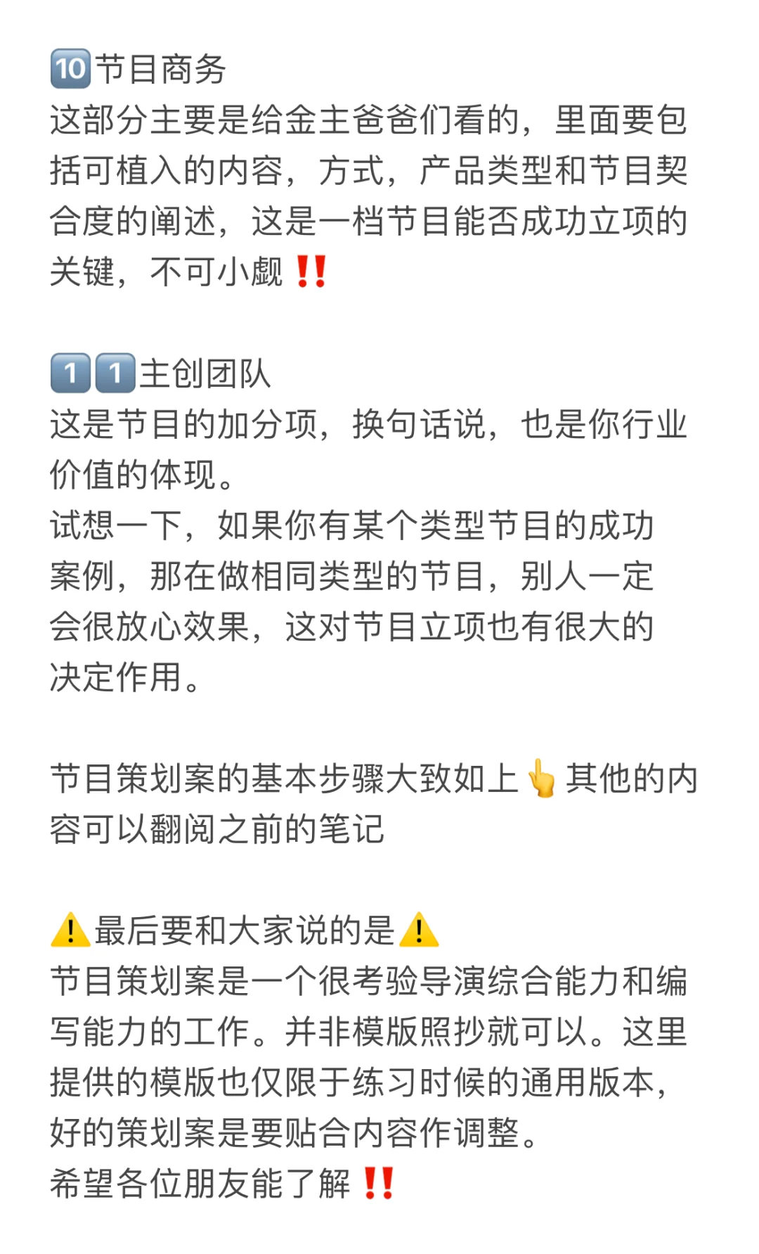 节目策划案的基本步骤大致如上👆其他的内容可以翻阅之前的笔记